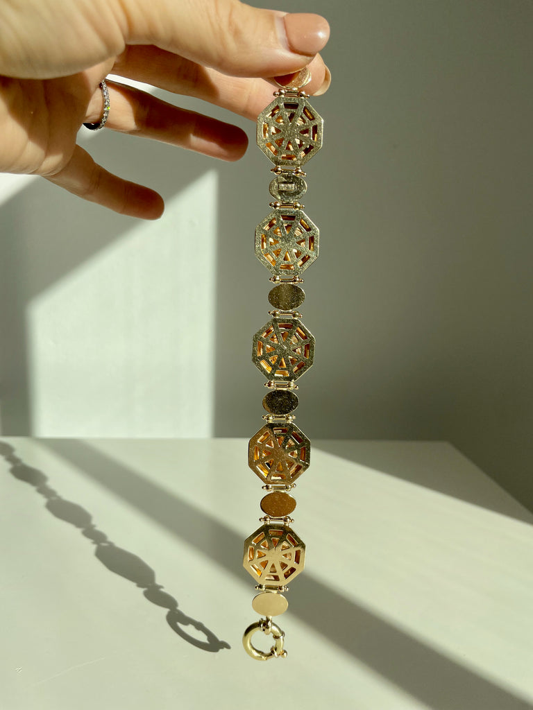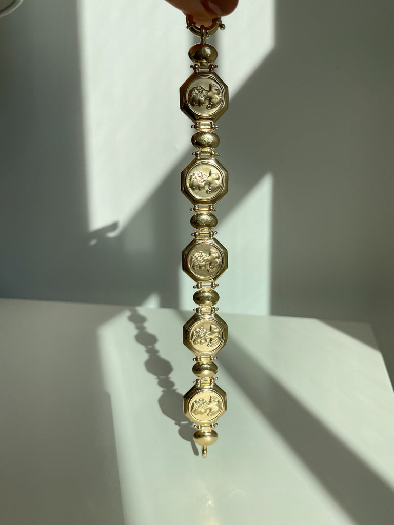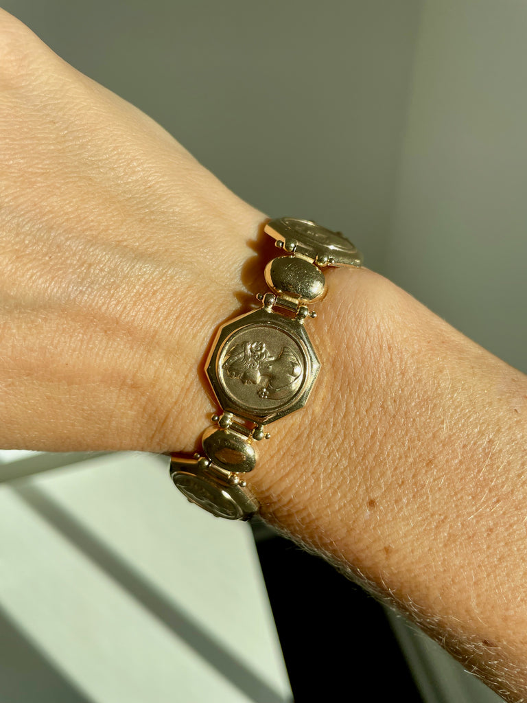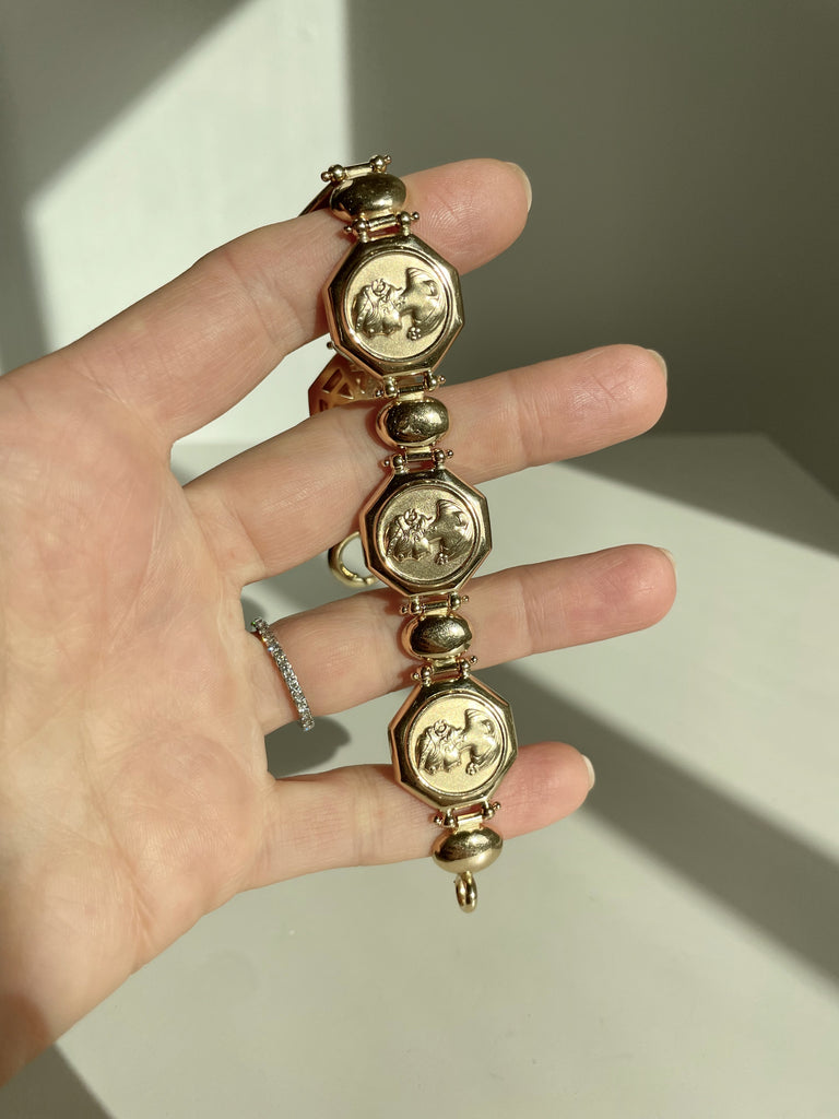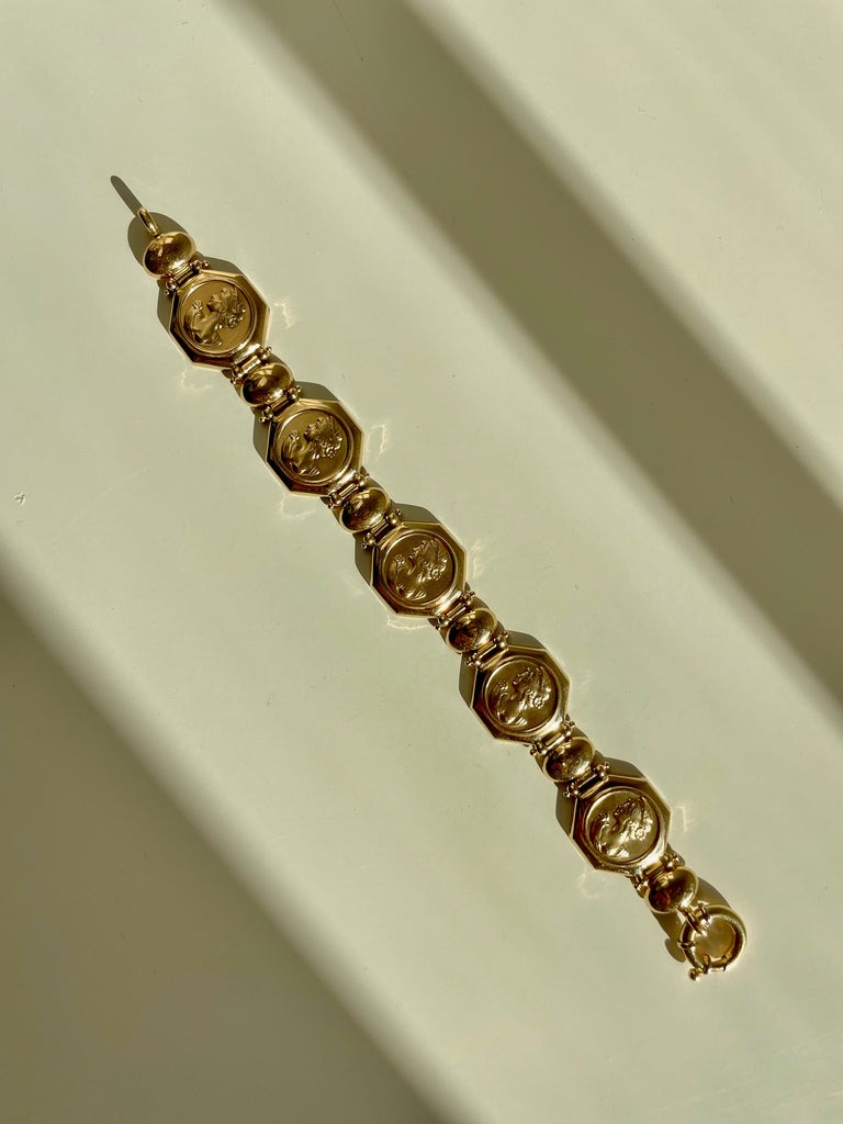 I love what a great statement this Italian 14k cameo bracelet makes! I love the geometric shapes with the classic images paired with the big spring clasp! It is a great piece - effortlessly cool, elevated and easy to wear!