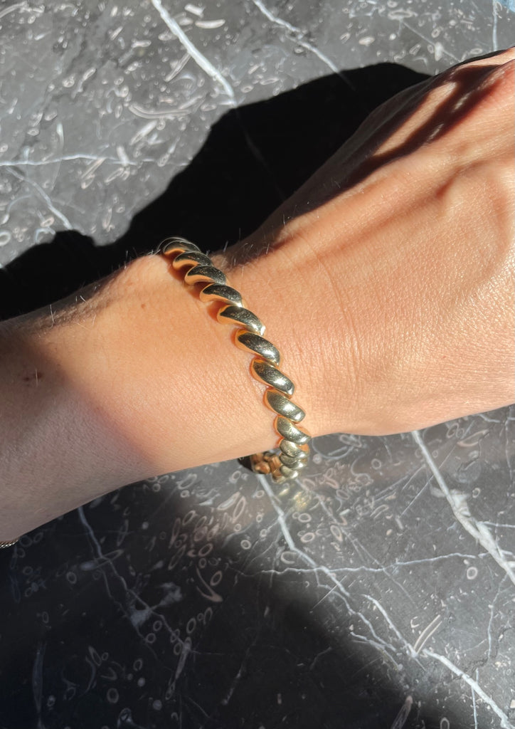 Oh how I love this one. This San Marco style bracelet is very cool. It is buttery, smooth, feels great on and makes a great statement alone or in a stack (but I think it looks incredibly chic on it's own). It's one of those pieces you'll have and love forever.