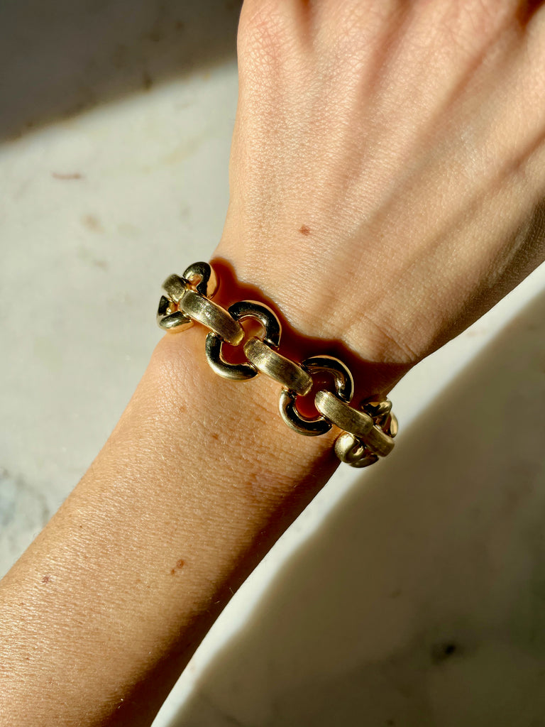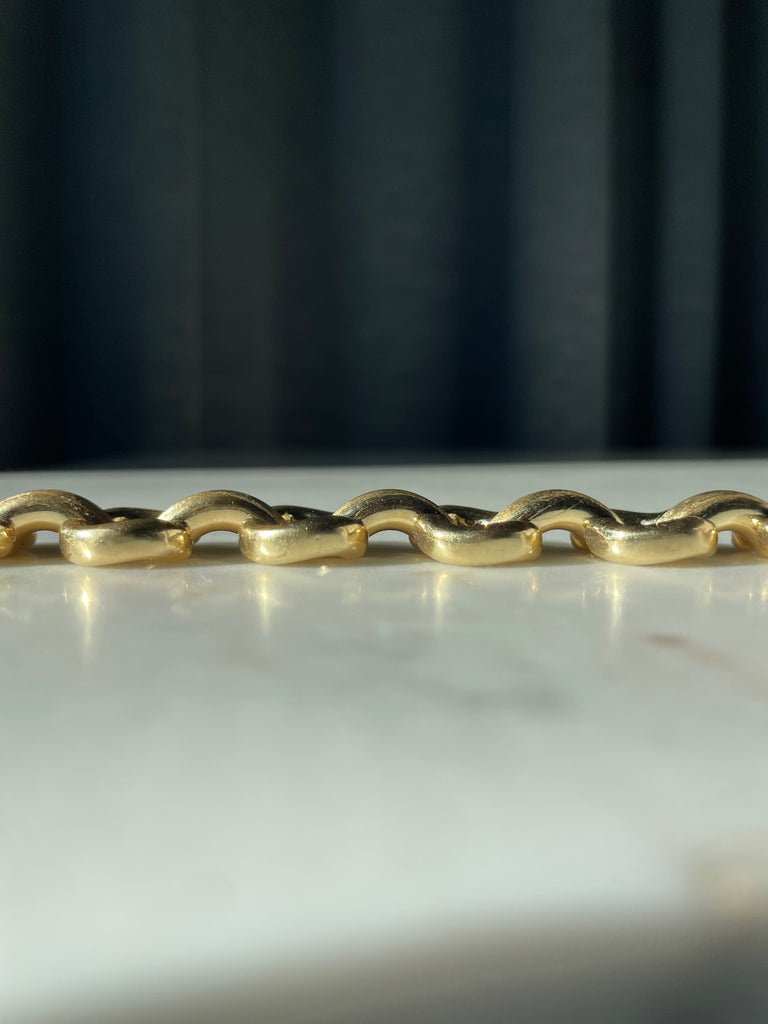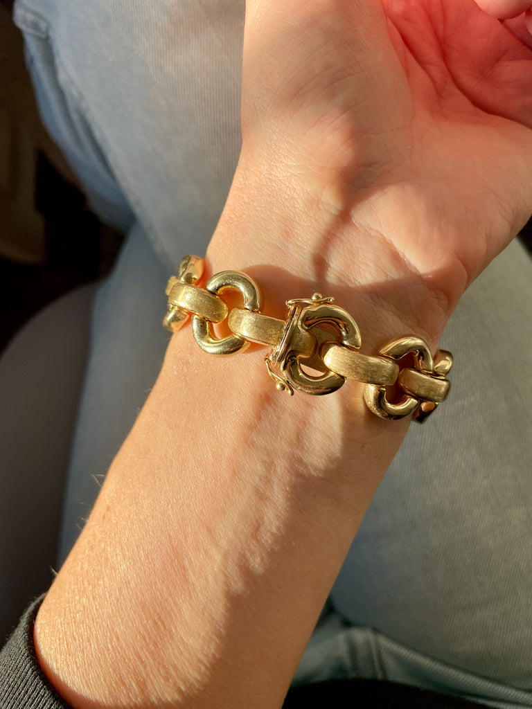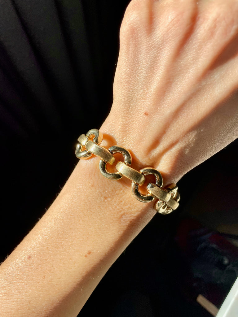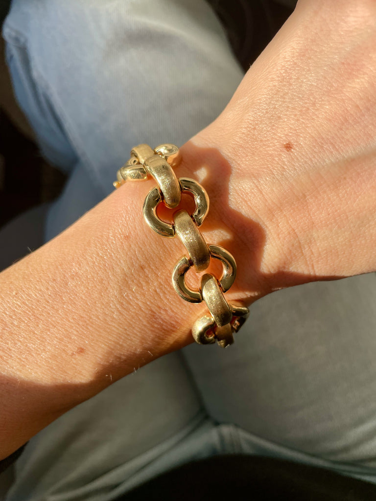 I absolutely adore this incredibly chic vintage oval link bracelet. The oval links and mixed finishes give this piece a unique and elevated look, and the hidden clasp and two safety clasps keep it secure. This piece is timeless, elegant and cool.