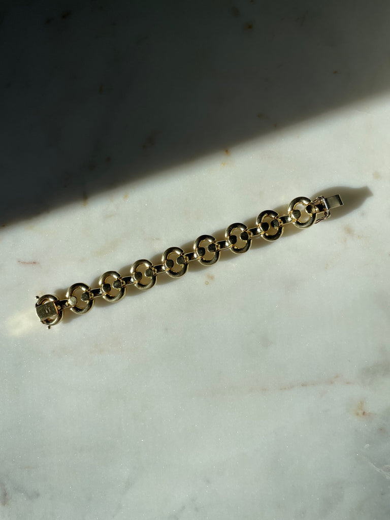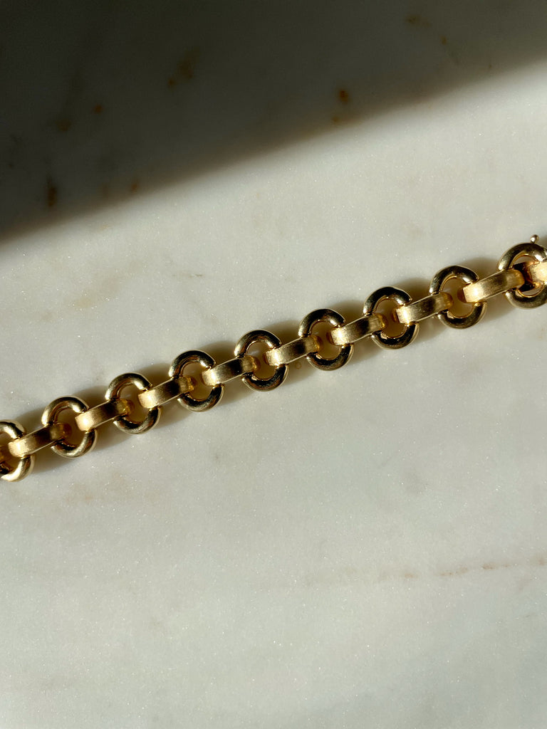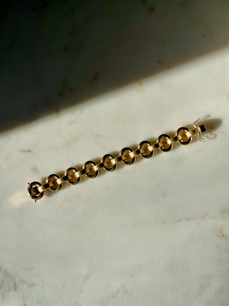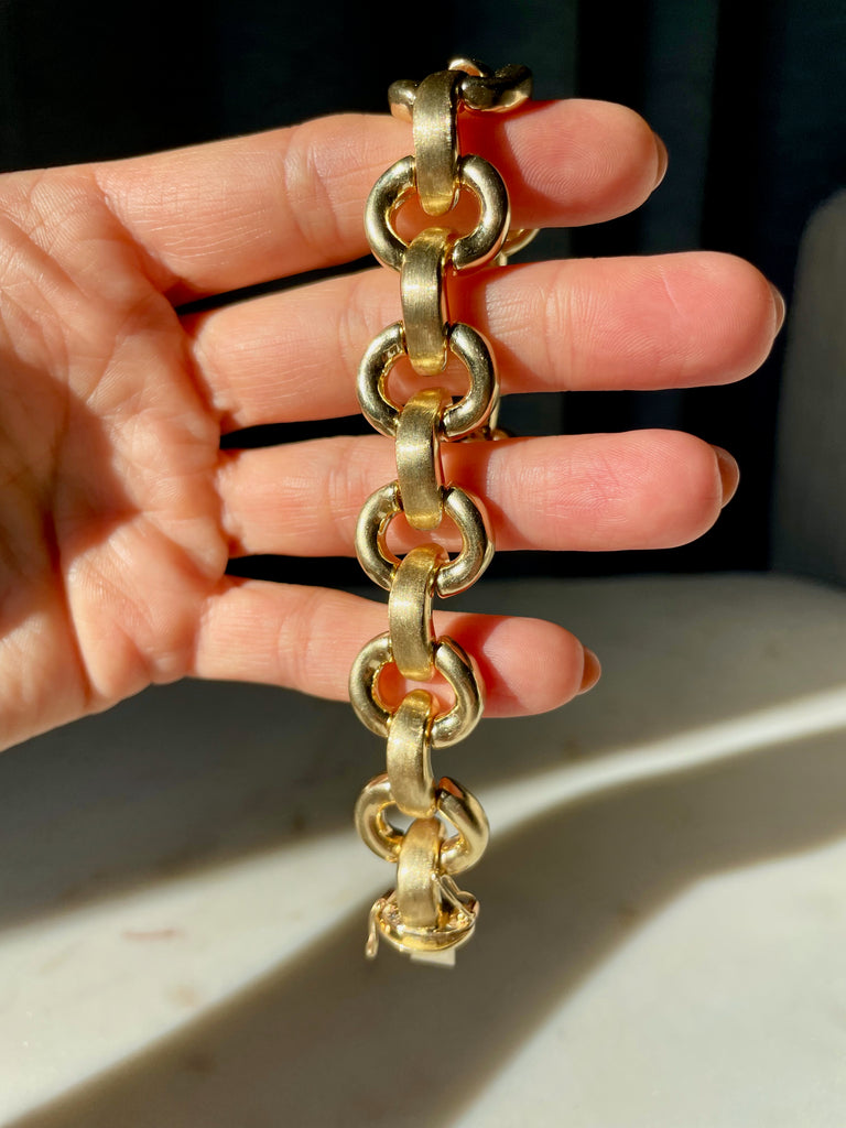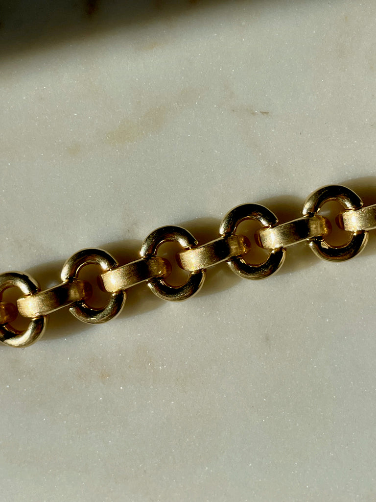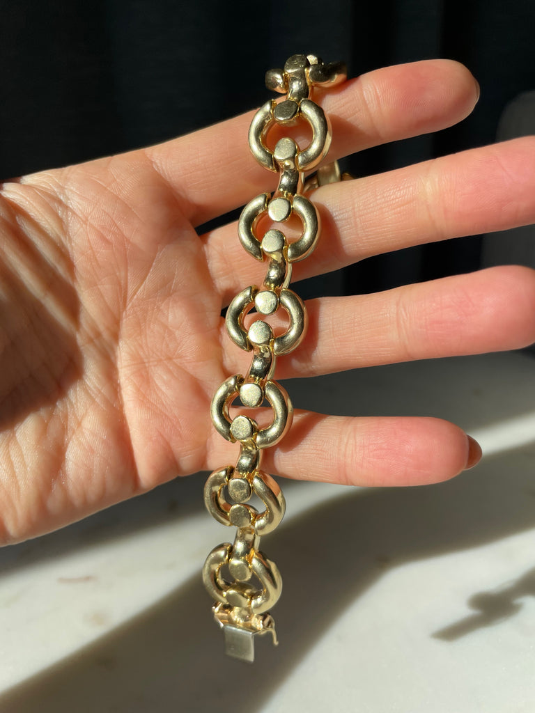 I absolutely adore this incredibly chic vintage oval link bracelet. The oval links and mixed finishes give this piece a unique and elevated look, and the hidden clasp and two safety clasps keep it secure. This piece is timeless, elegant and cool.