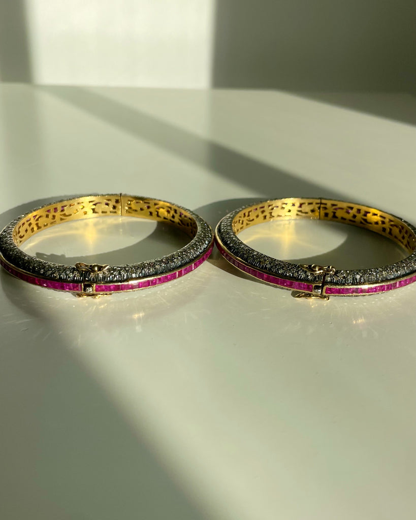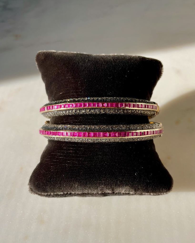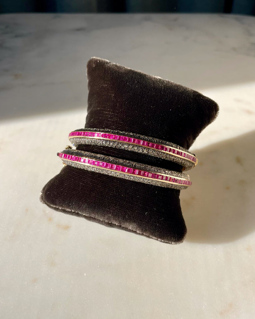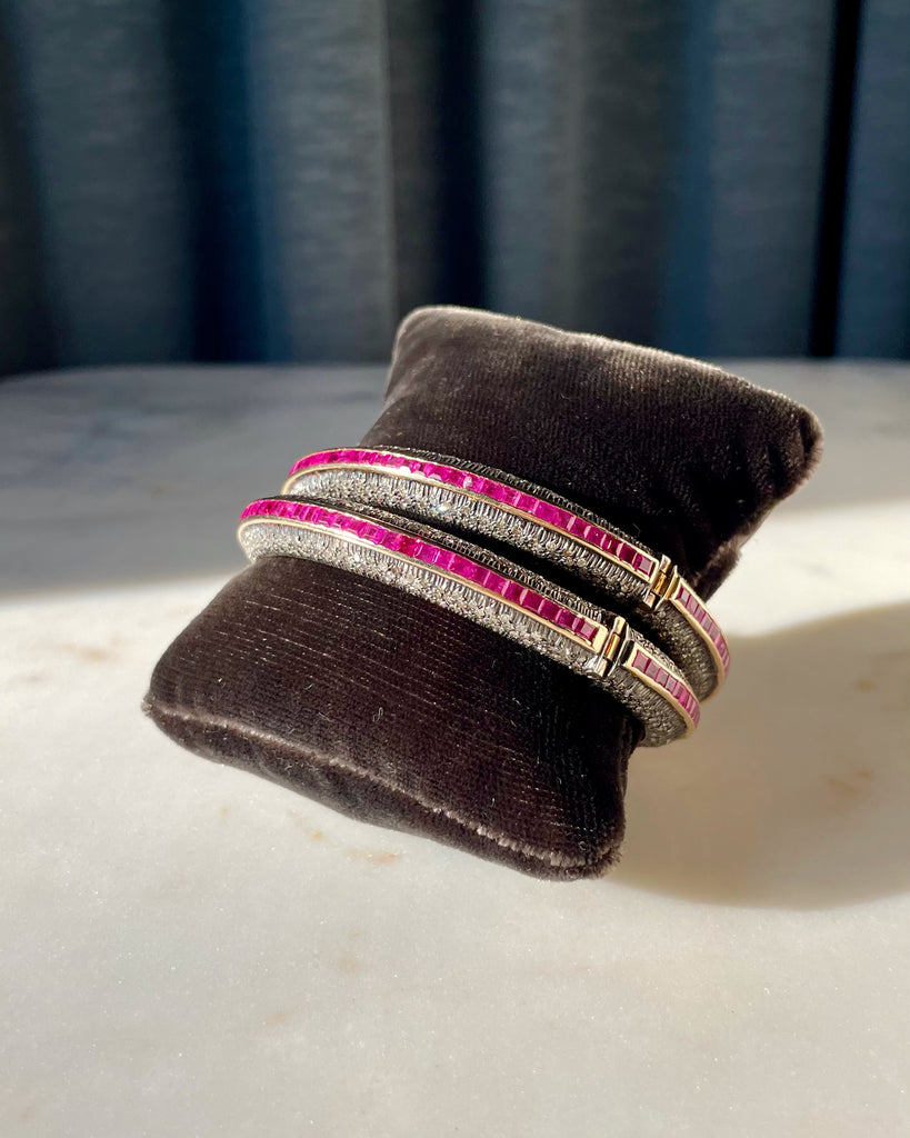 I have to admit I've been holding out on these -I haven't listed these incredible ruby and diamond hinged bangles before now because I just love them so much. They are so incredibly chic and cool and proof that two is better than one.