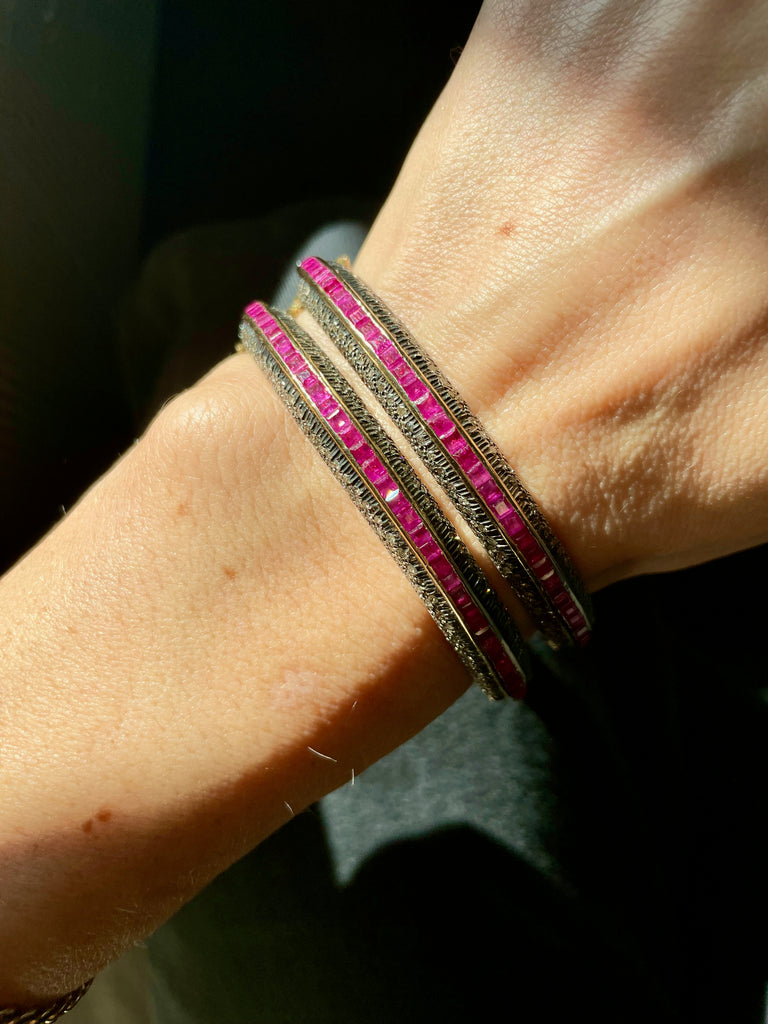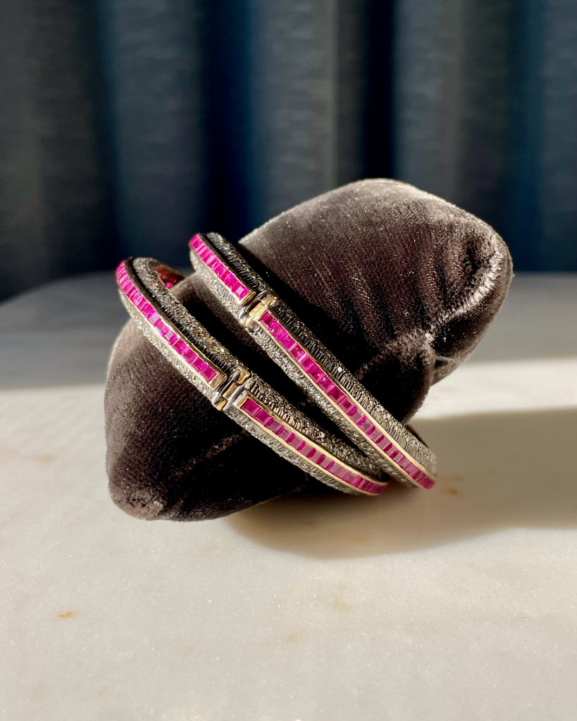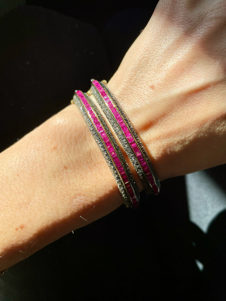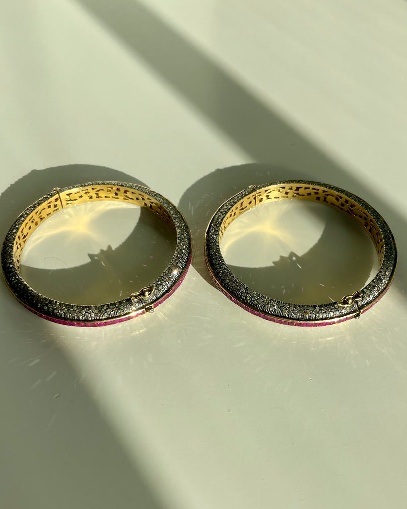 I have to admit I've been holding out on these -I haven't listed these incredible ruby and diamond hinged bangles before now because I just love them so much. They are so incredibly chic and cool and proof that two is better than one.