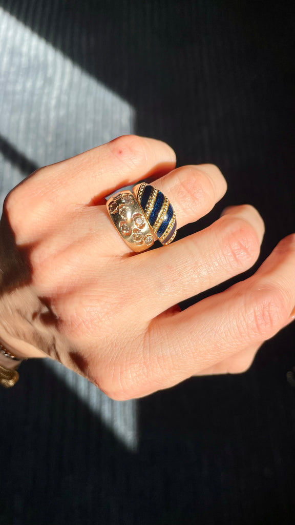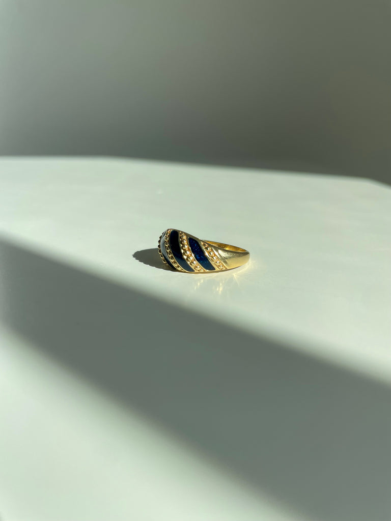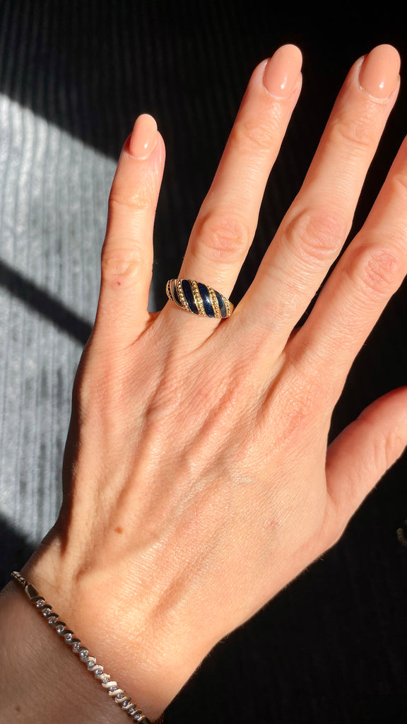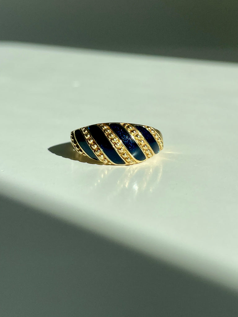 Midnight blue enameled vintage ring