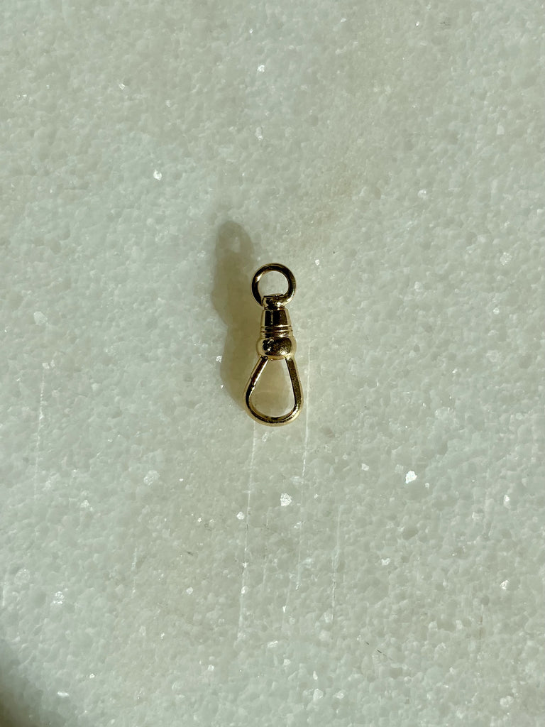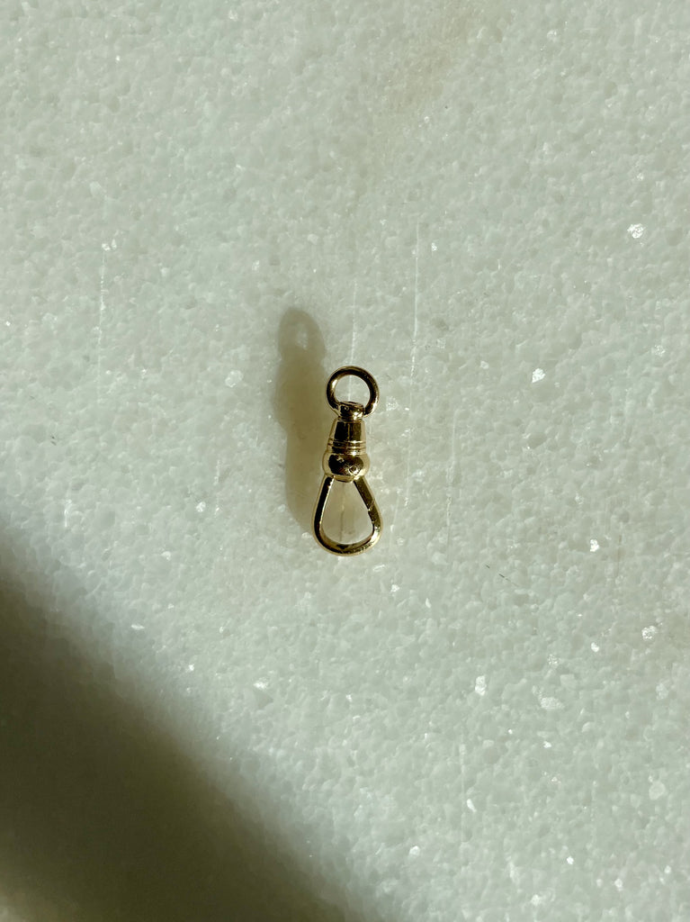 This working 14k dog clip is the perfect way to add some extra oomph to your nicknack. It is (in my humble opinion) the best way to hang charms to give your necklace some added length. You can also use it to extend a shorter chain. It is one of those "parts" that you never knew you needed until you incorporate it into your neck stack!