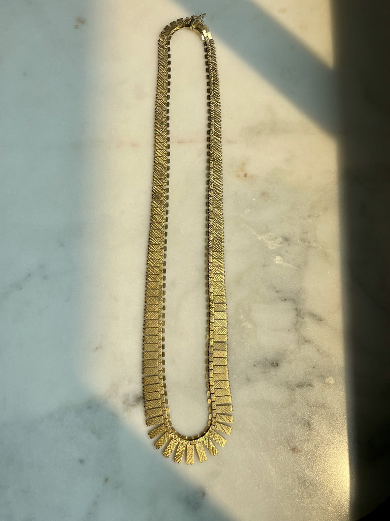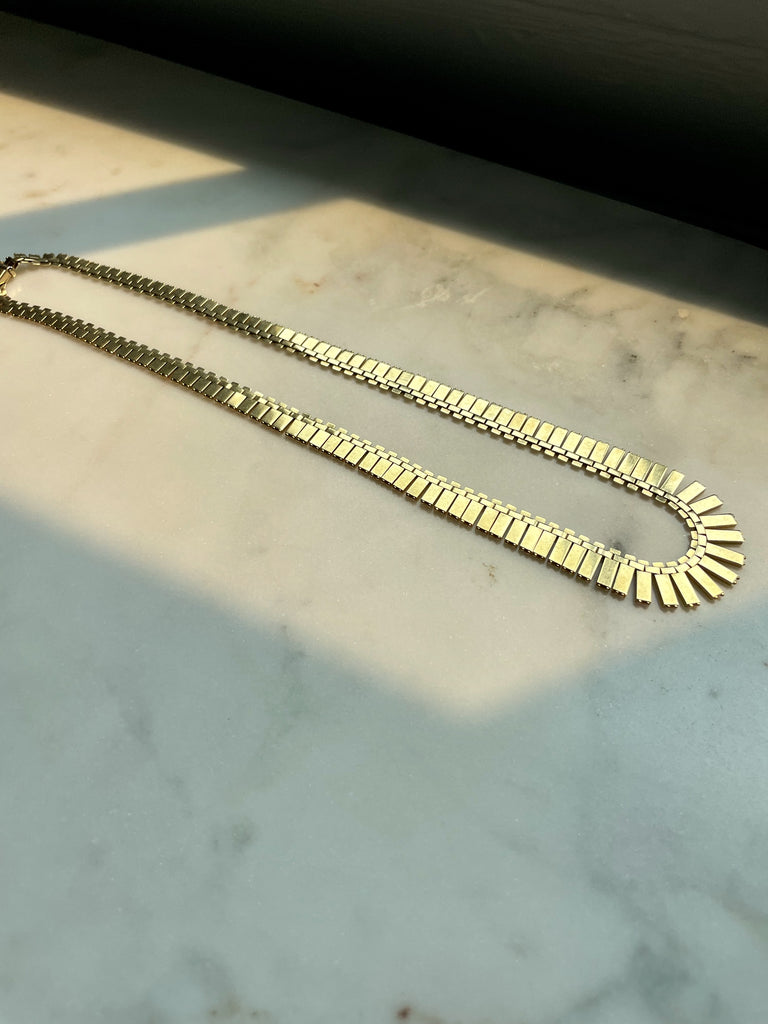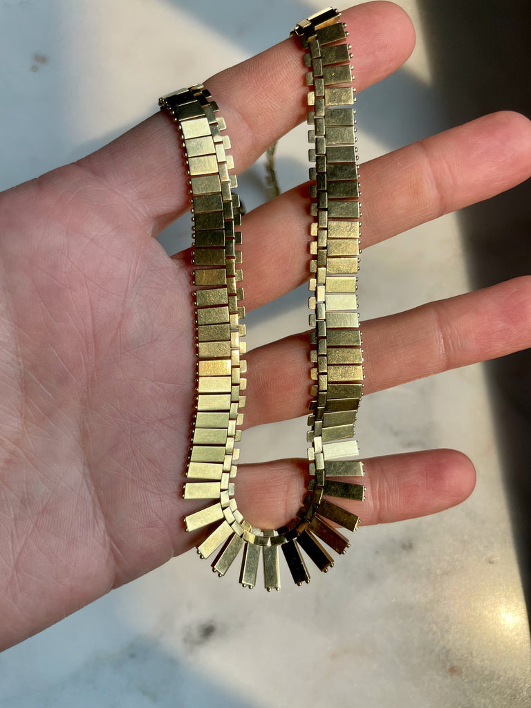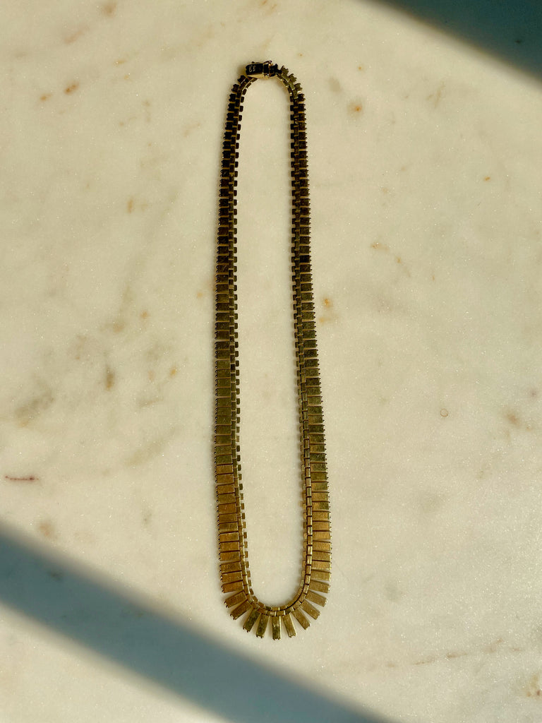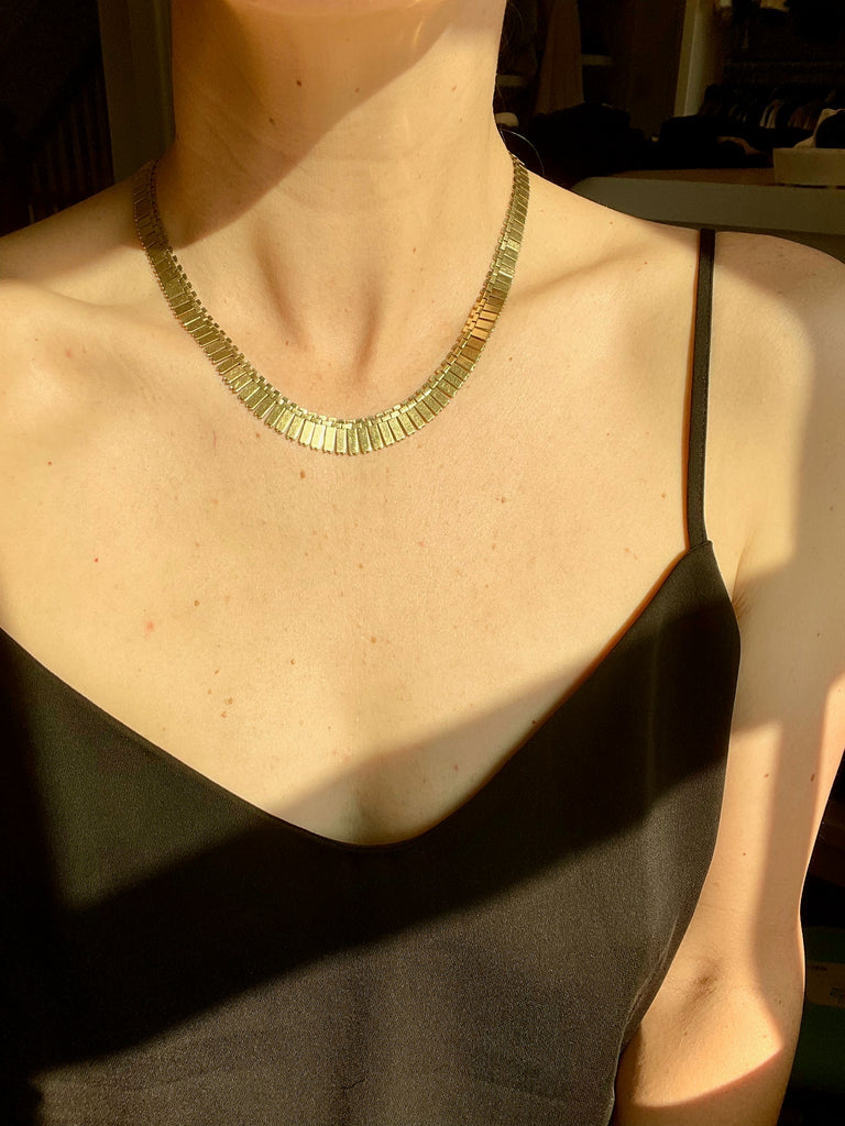 This incredible (and reversible) vintage 14k Cleopatra necklace is a piece you will have and love forever. One side has a polished finish (with a beautiful patina) for when you want to make more of a statement, while the other side has a Florentine finish for the days when you want a more subdued look. Both sides are stunning and I absolutely love the versatility. The details on this one are incredible and the fluidity is absolutely beautiful. You cannot go wrong with this one!
