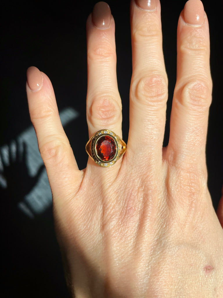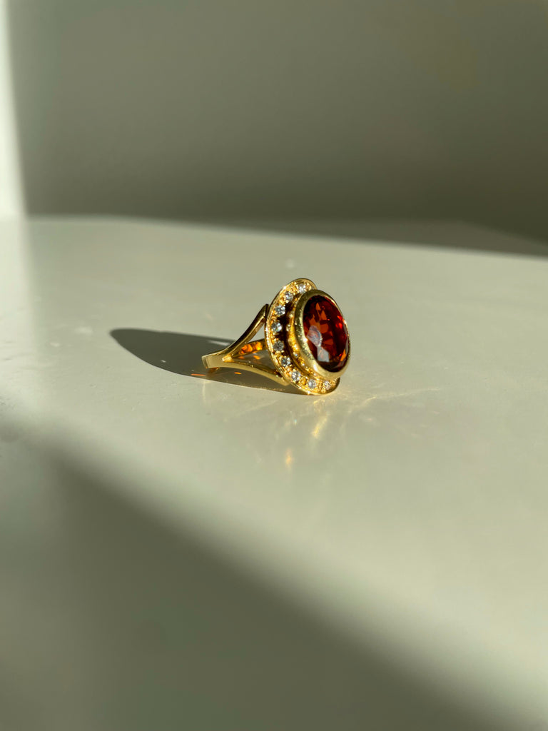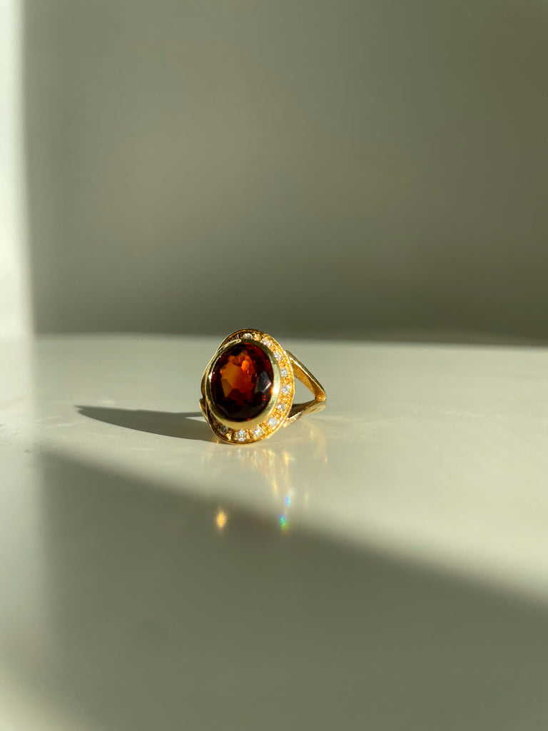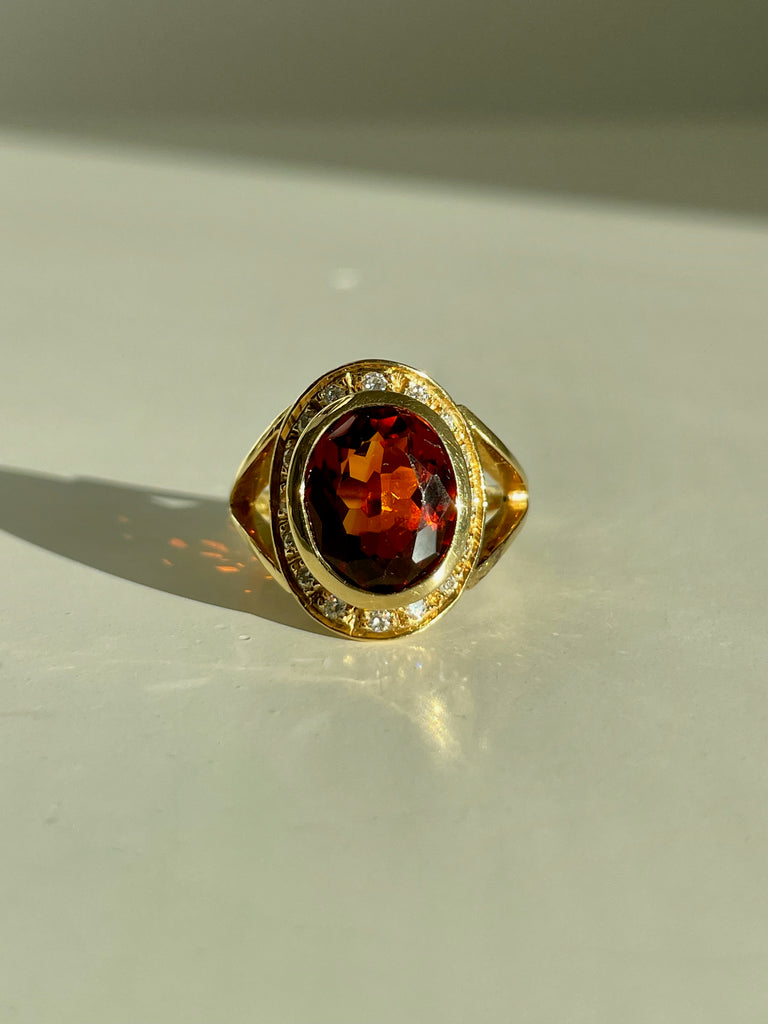 This ring is oh so stunning. The gorgeous deep hued 3 ct citrine pairs beautifully with the 18k gold and .4ct of sparkling diamonds. This piece is elevated, sophisticated, and incredibly chic.
