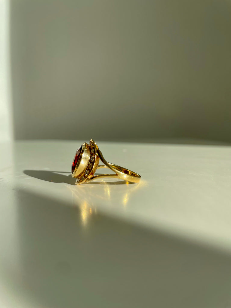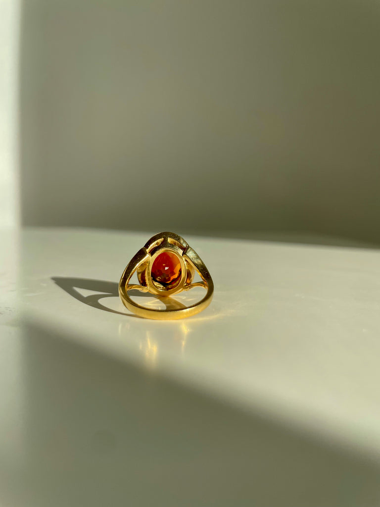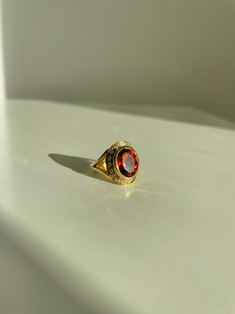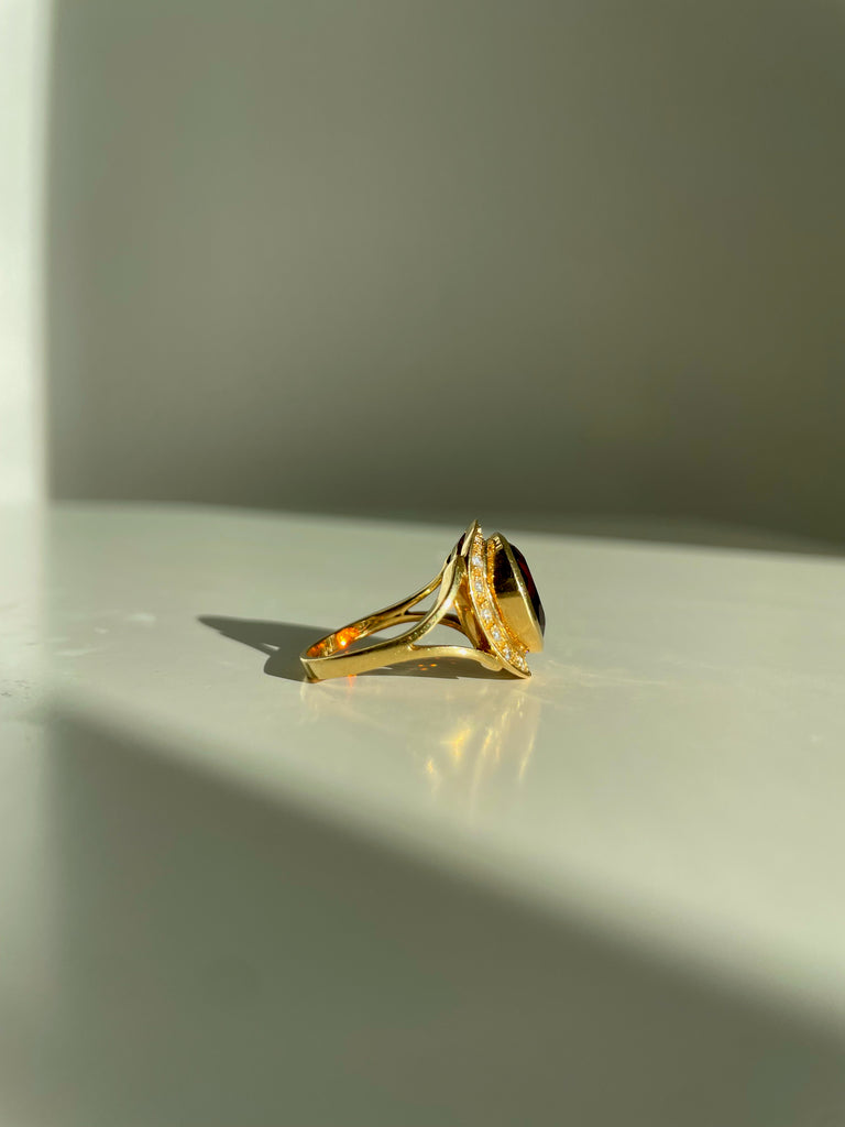 This ring is oh so stunning. The gorgeous deep hued 3 ct citrine pairs beautifully with the 18k gold and .4ct of sparkling diamonds. This piece is elevated, sophisticated, and incredibly chic.