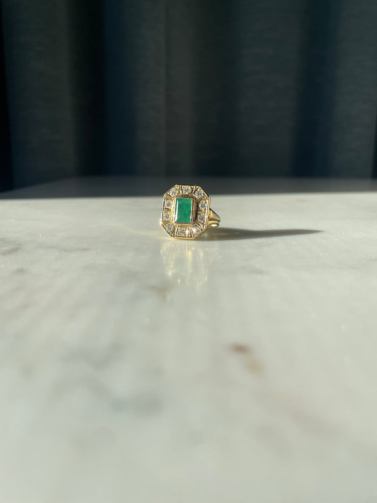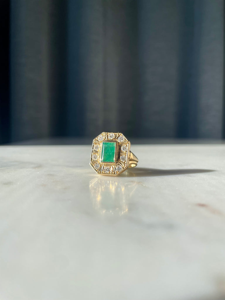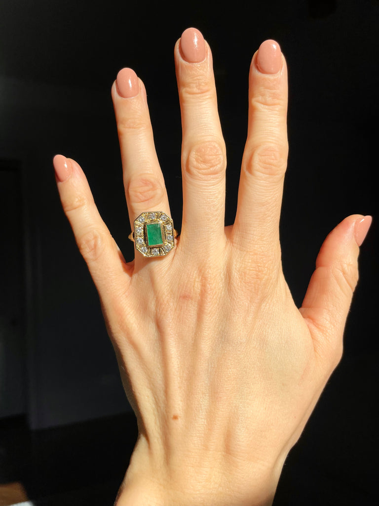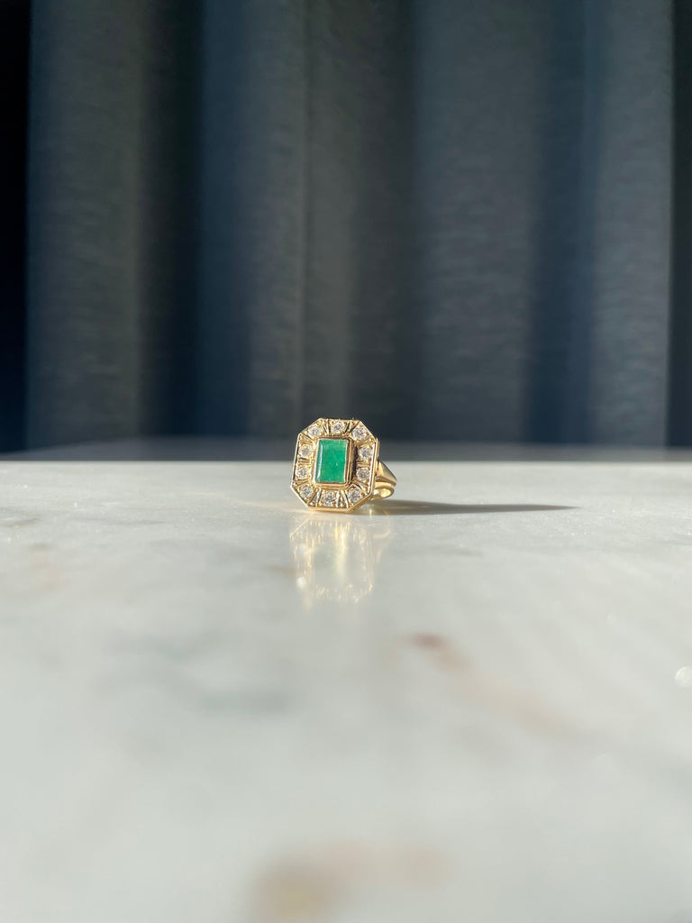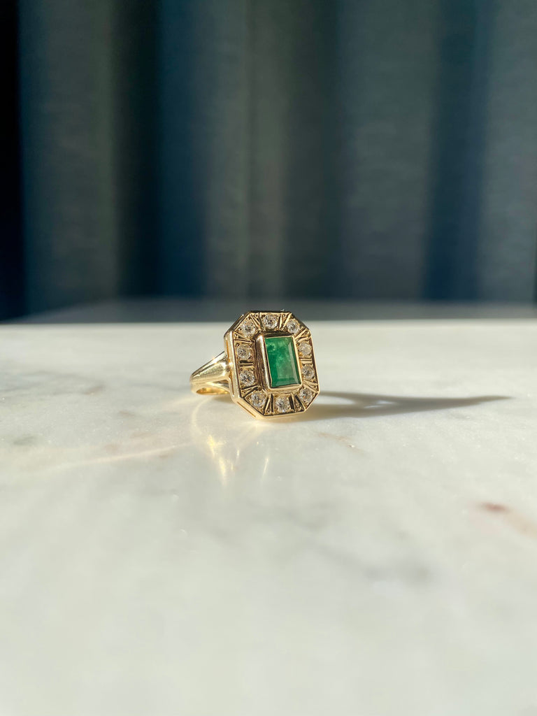 Emerald and diamond cocktail ring