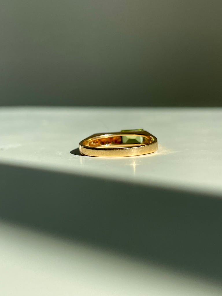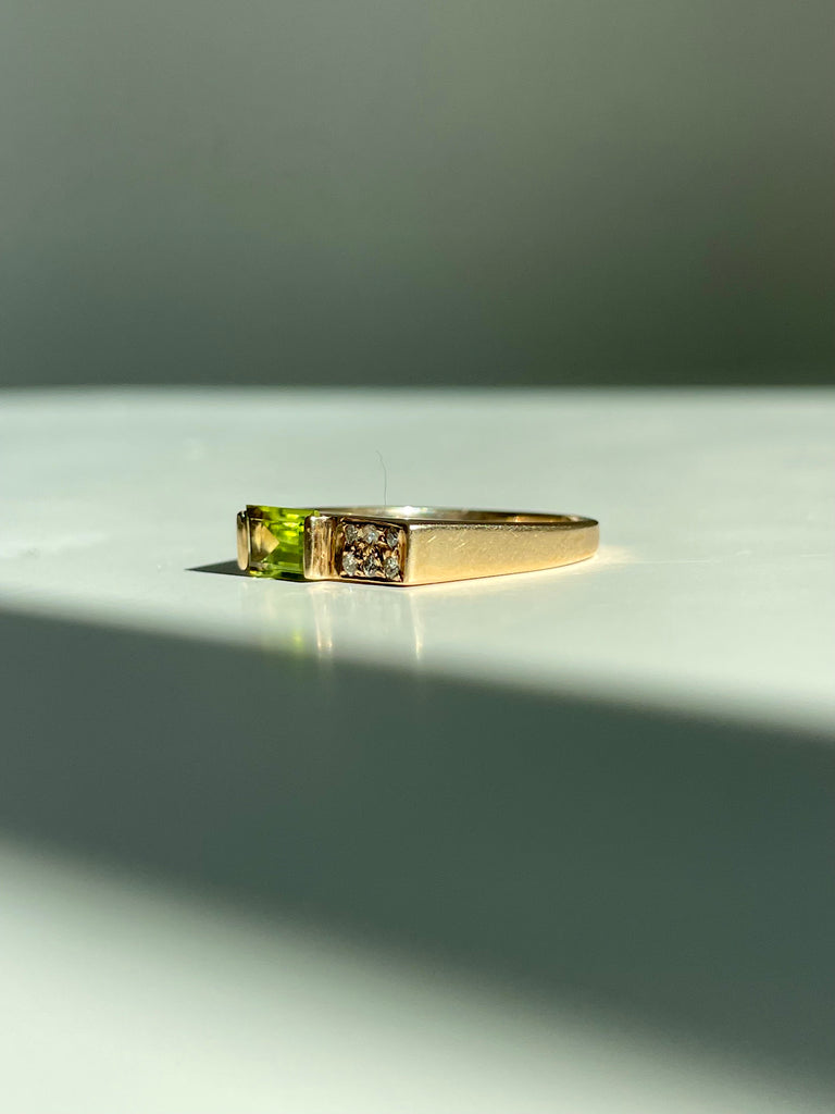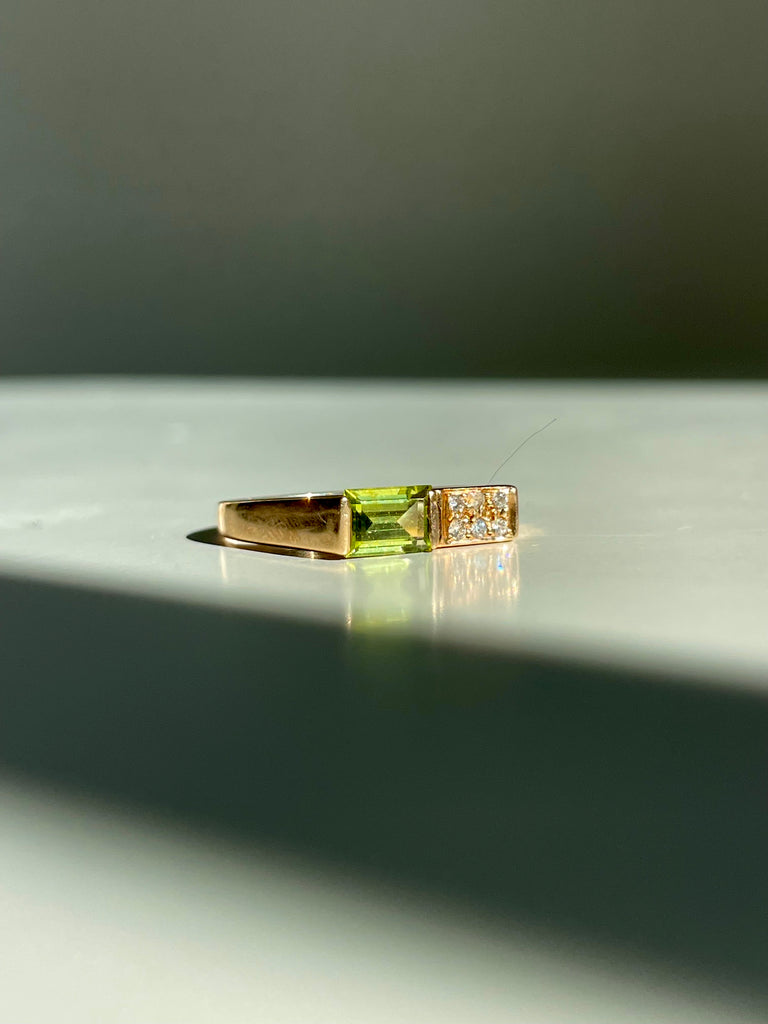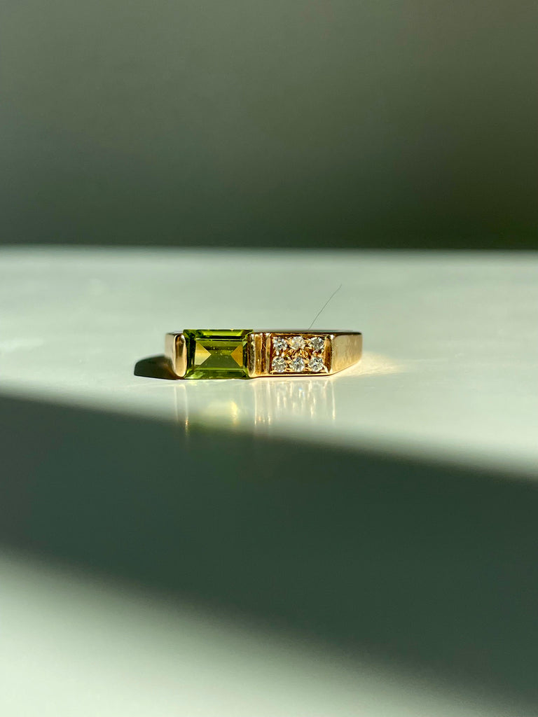 Green tourmaline and diamond squared ring