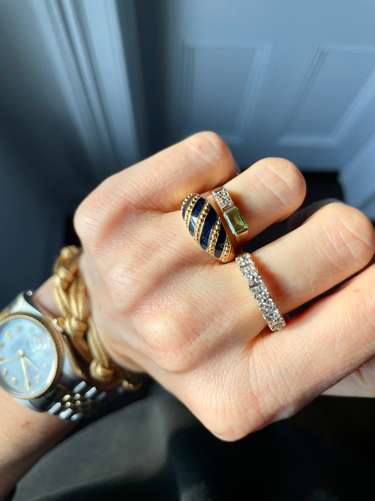 This cute ring brings a pop of color for Spring. This squared band adds something unexpected and fun to a stack and can also hold its own alone. It's a keeper.