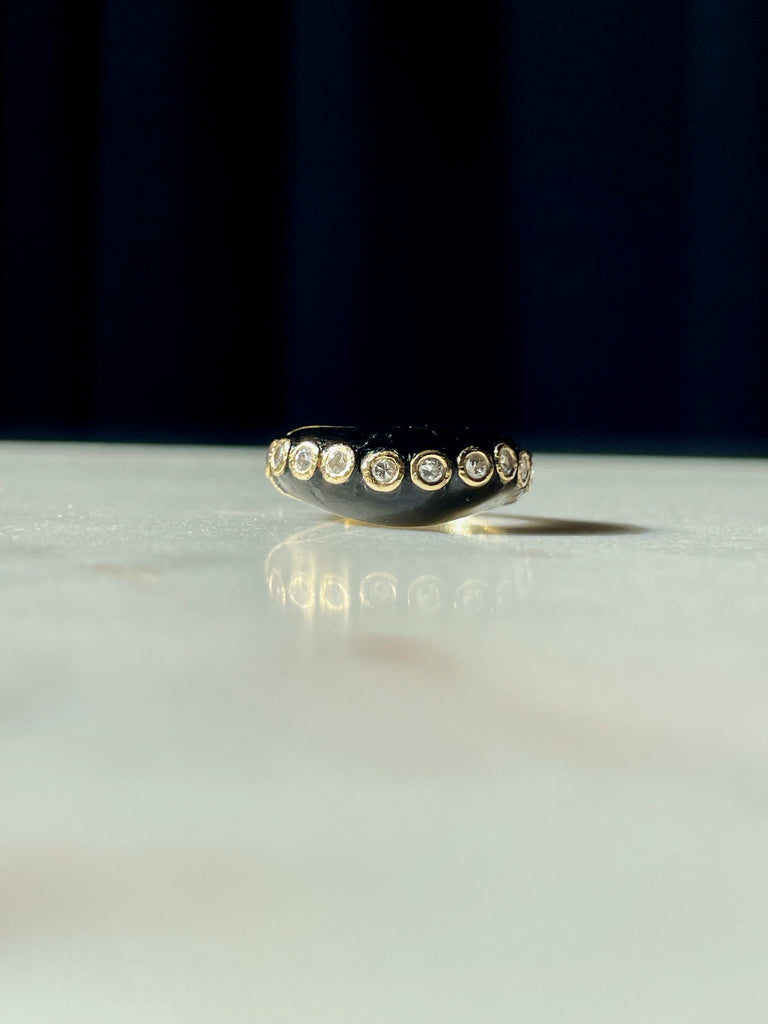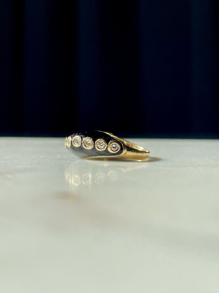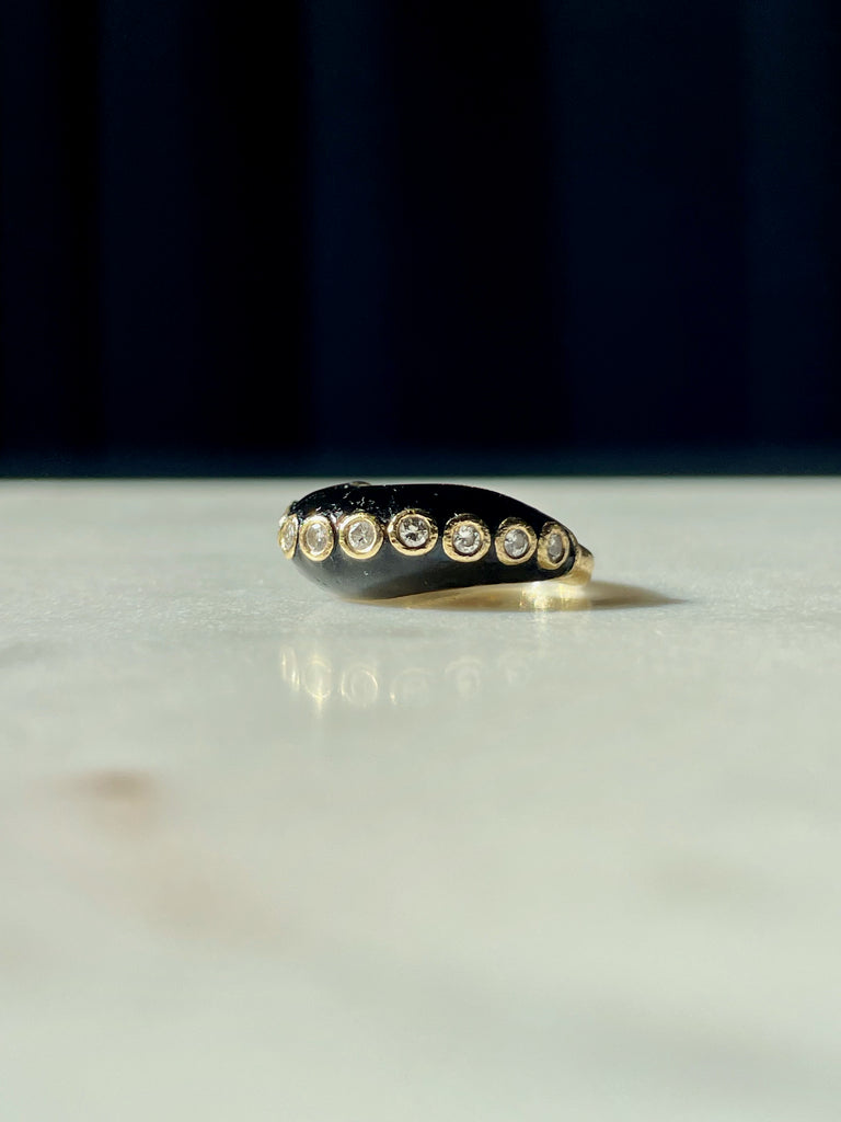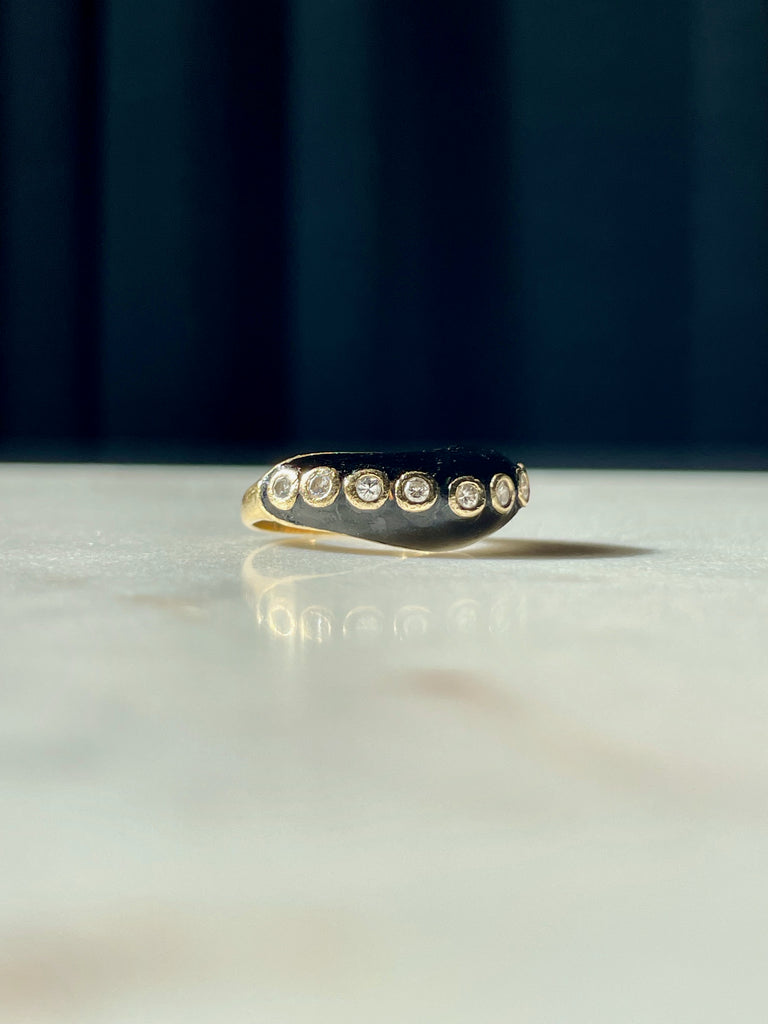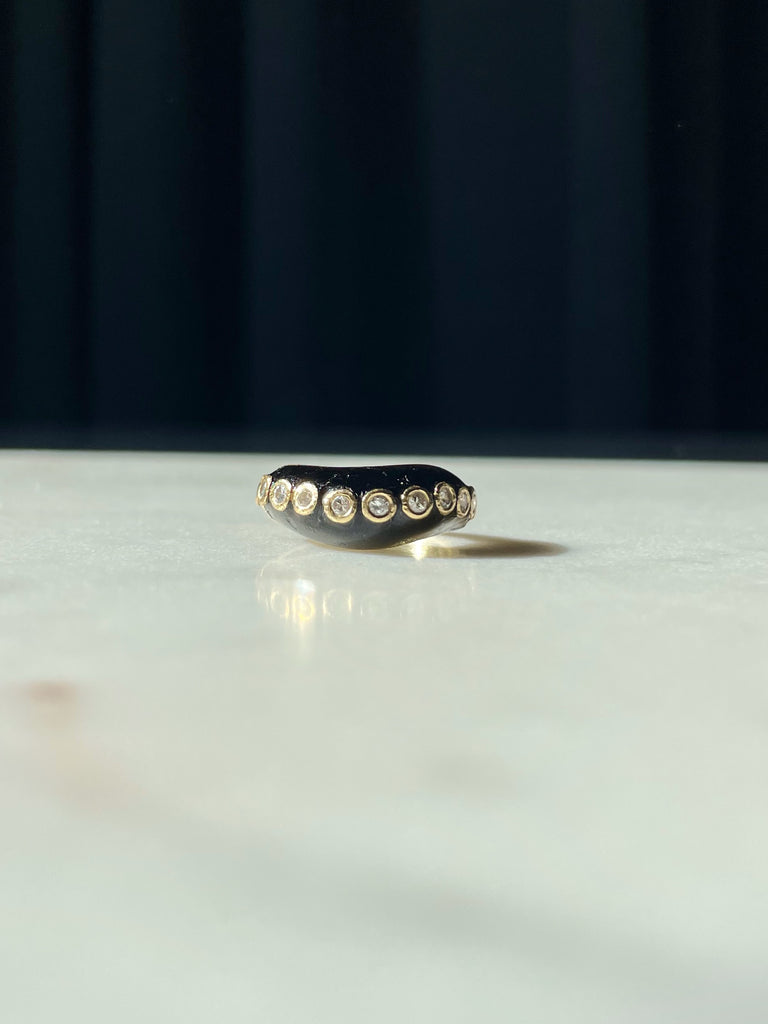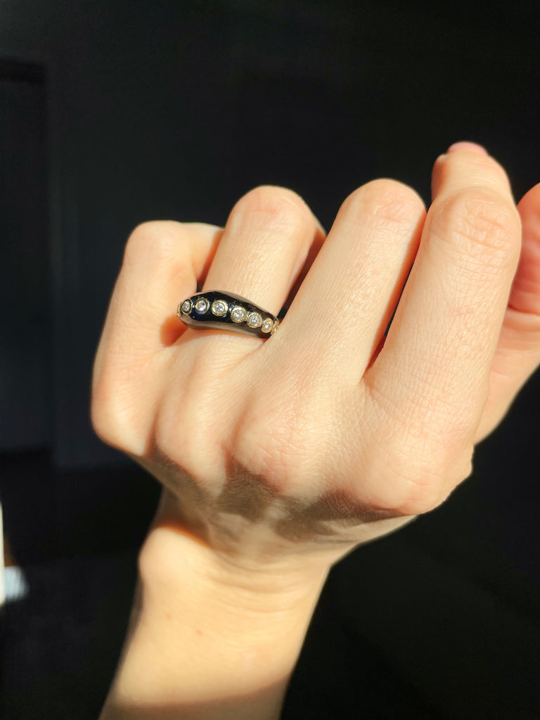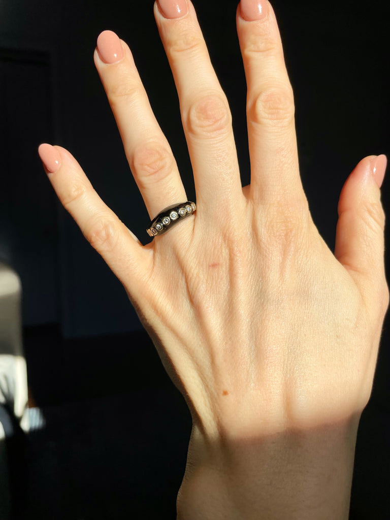 Onyx and bezel set diamond wave ring