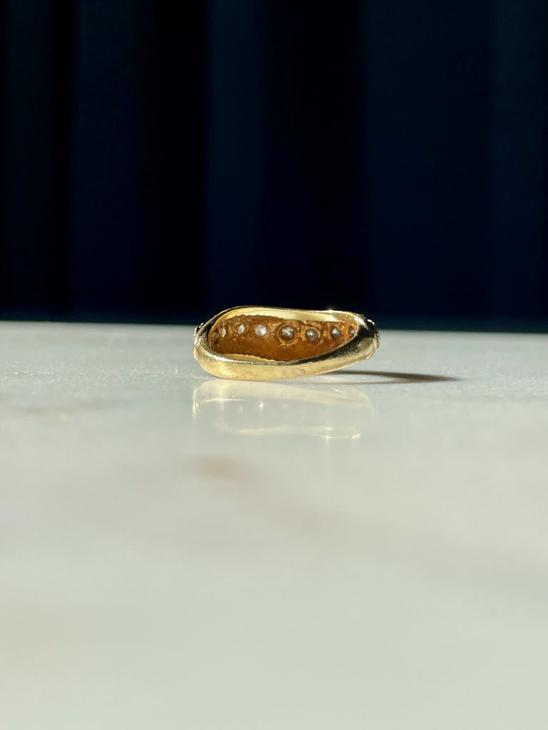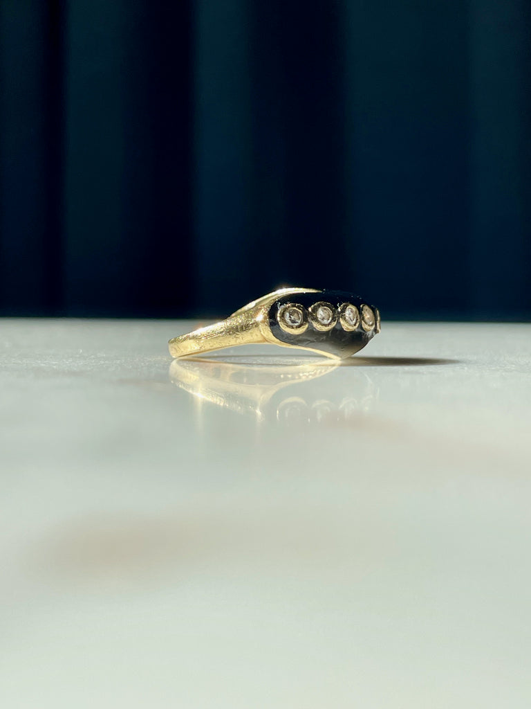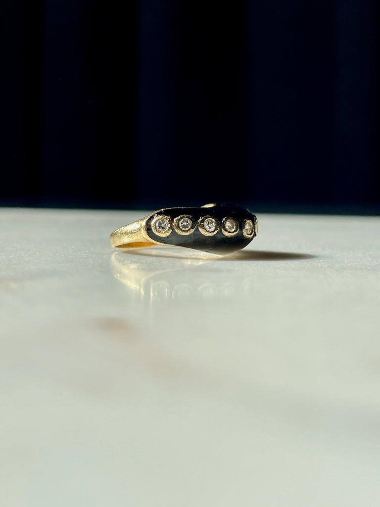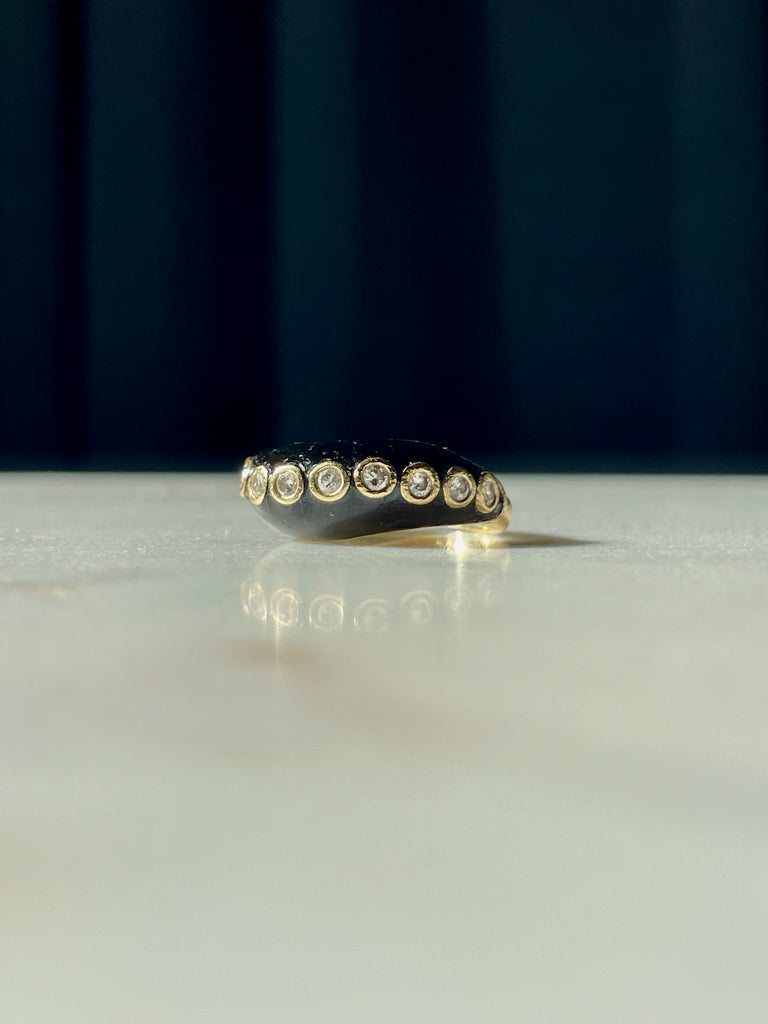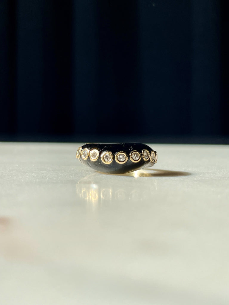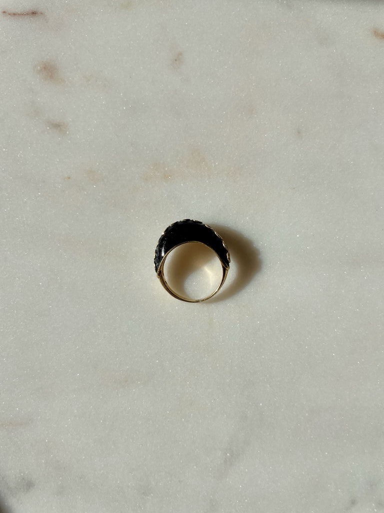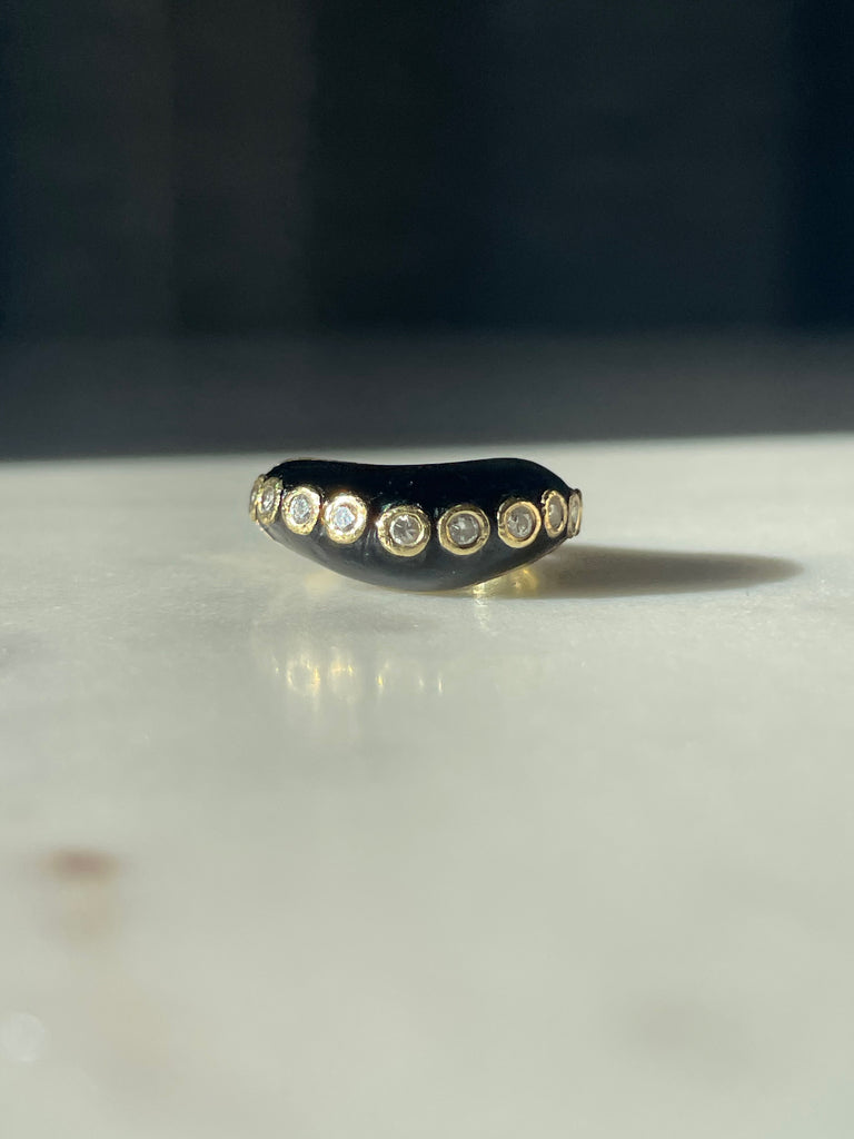 Onyx and bezel set diamond wave ring