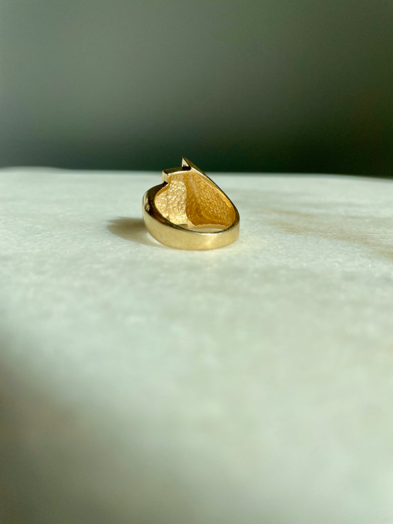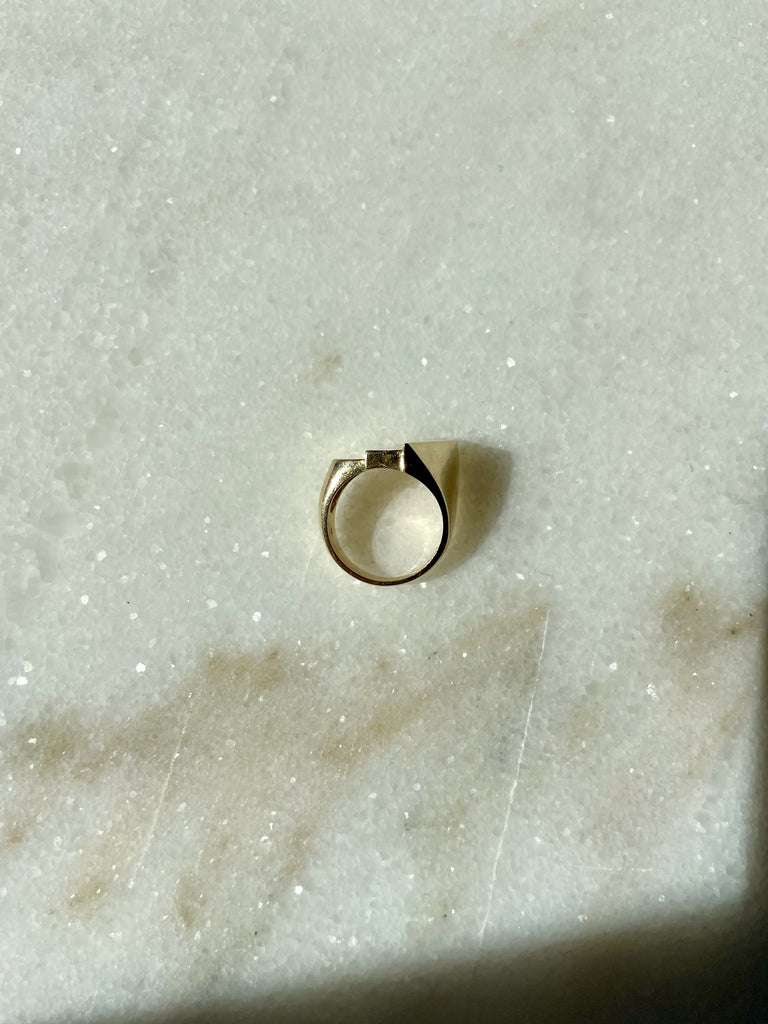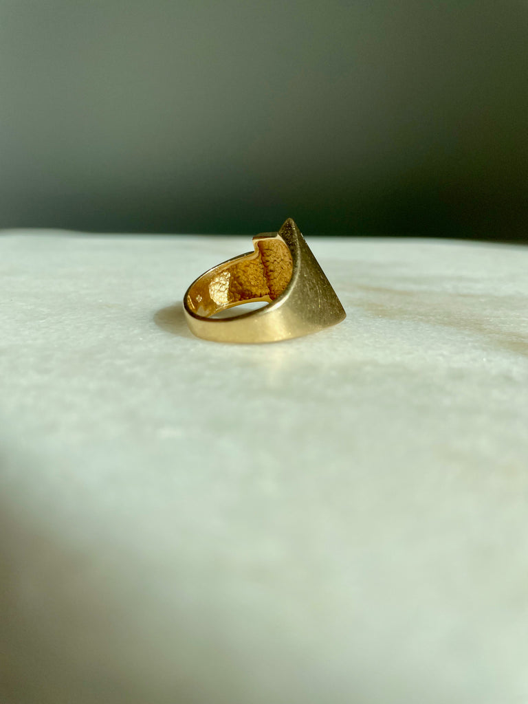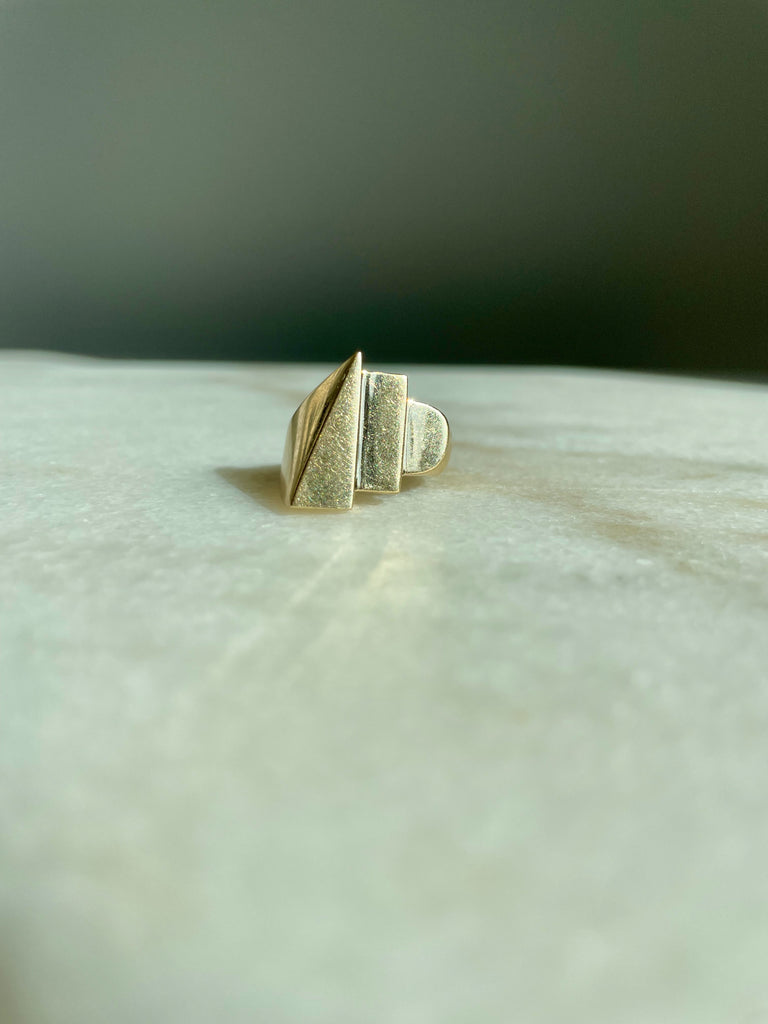 This ring is very unique and modern. The sculptural, stepped geometric shapes make it something to see from every angle. This is an effortlessly cool everyday ring that you won't want to take off.