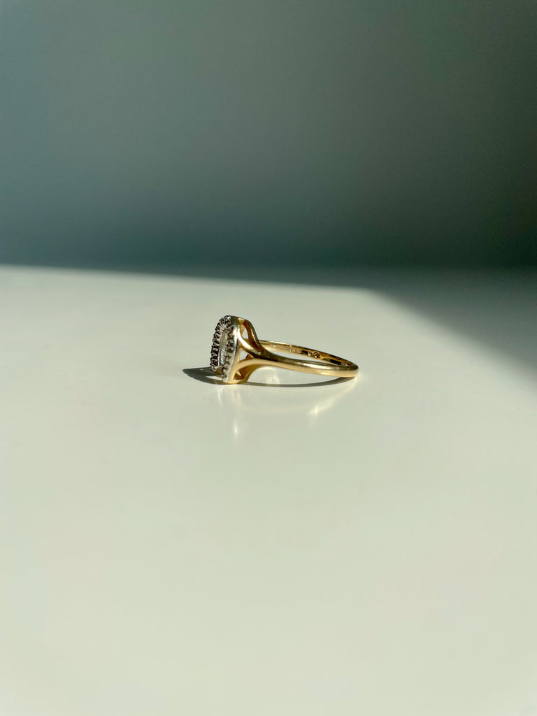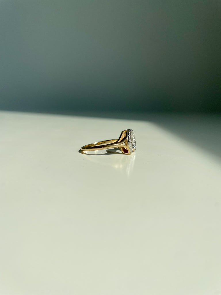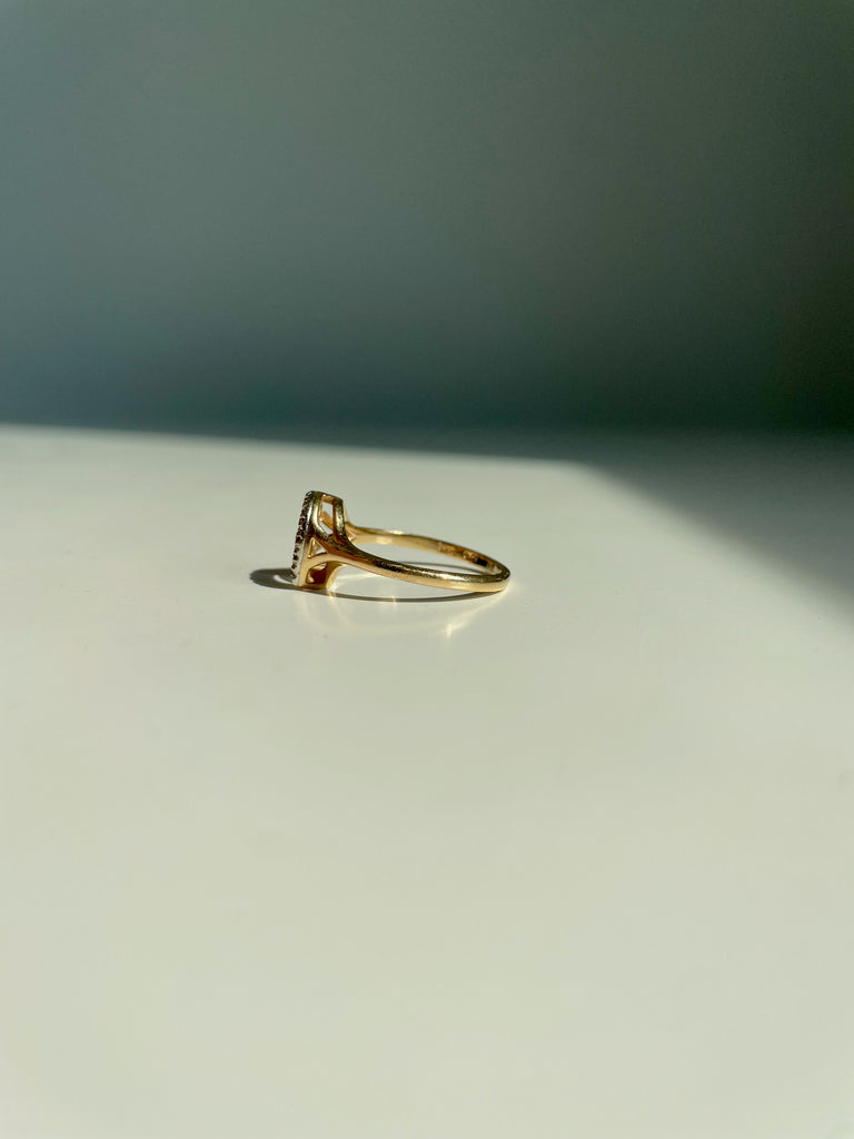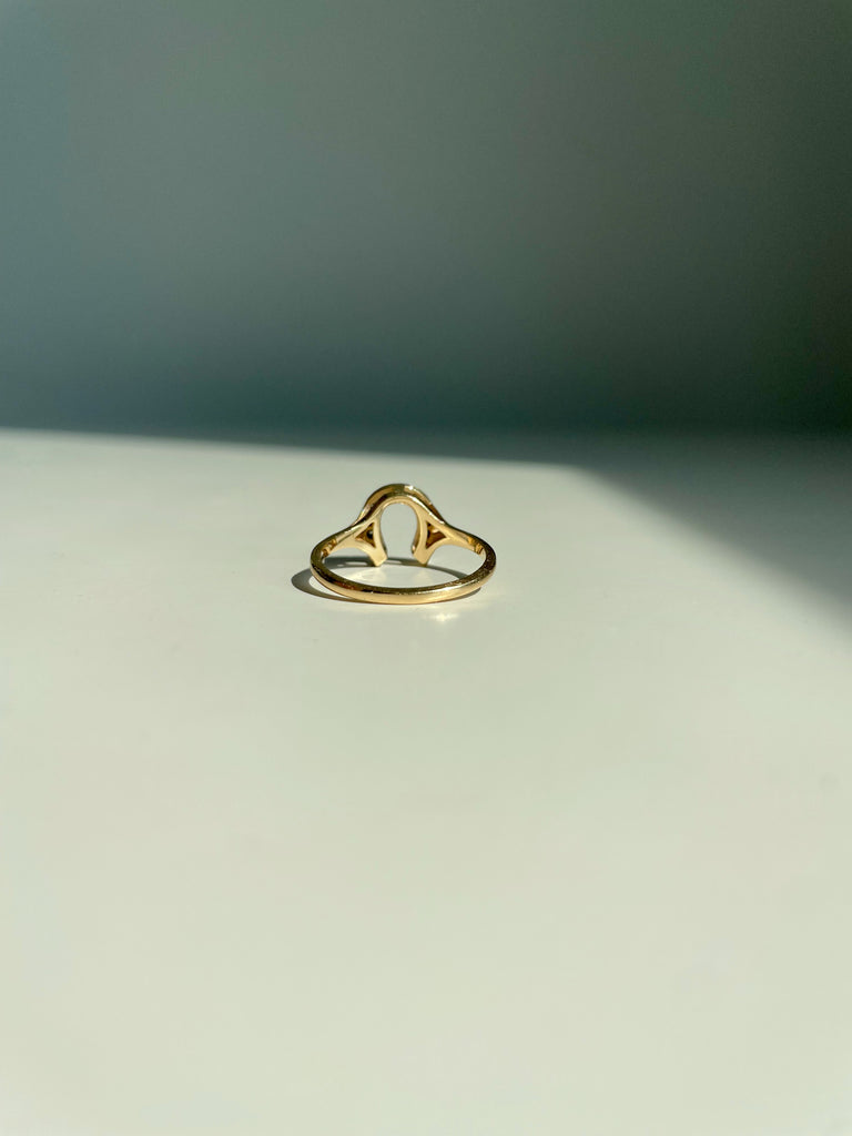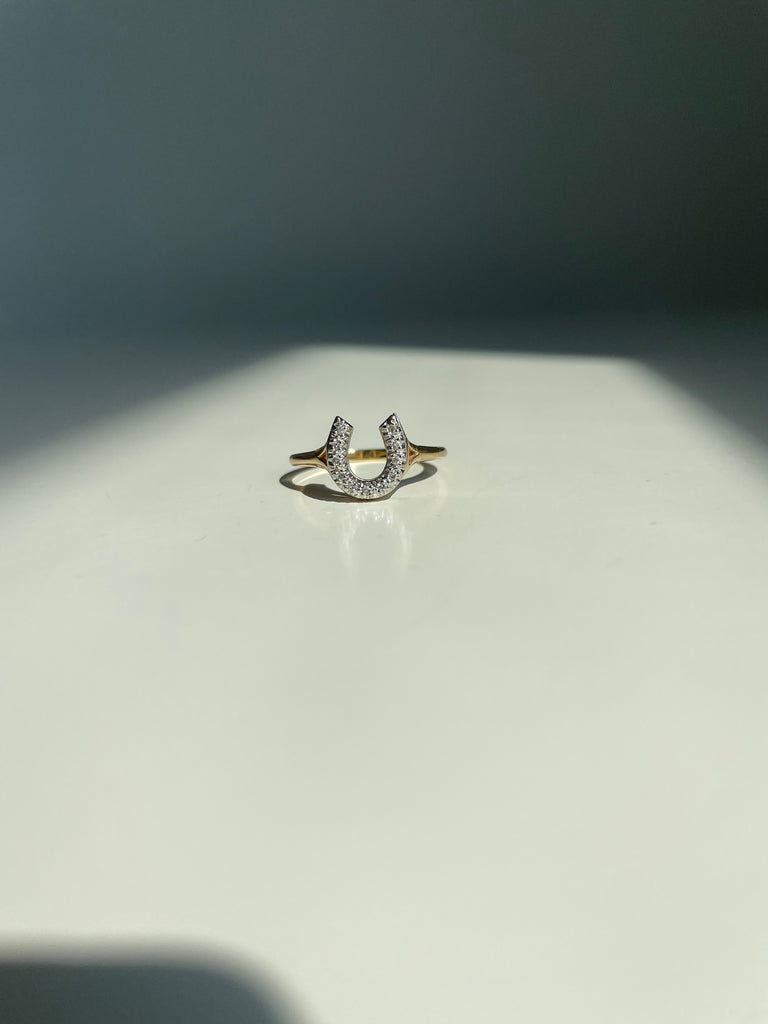 This 14k dainty horseshoe ring will bring you all the luck! It is such a cute piece and I love that the stones are set in white gold. The stones are small, give a nice shimmer to the ring and are likely moissanite.