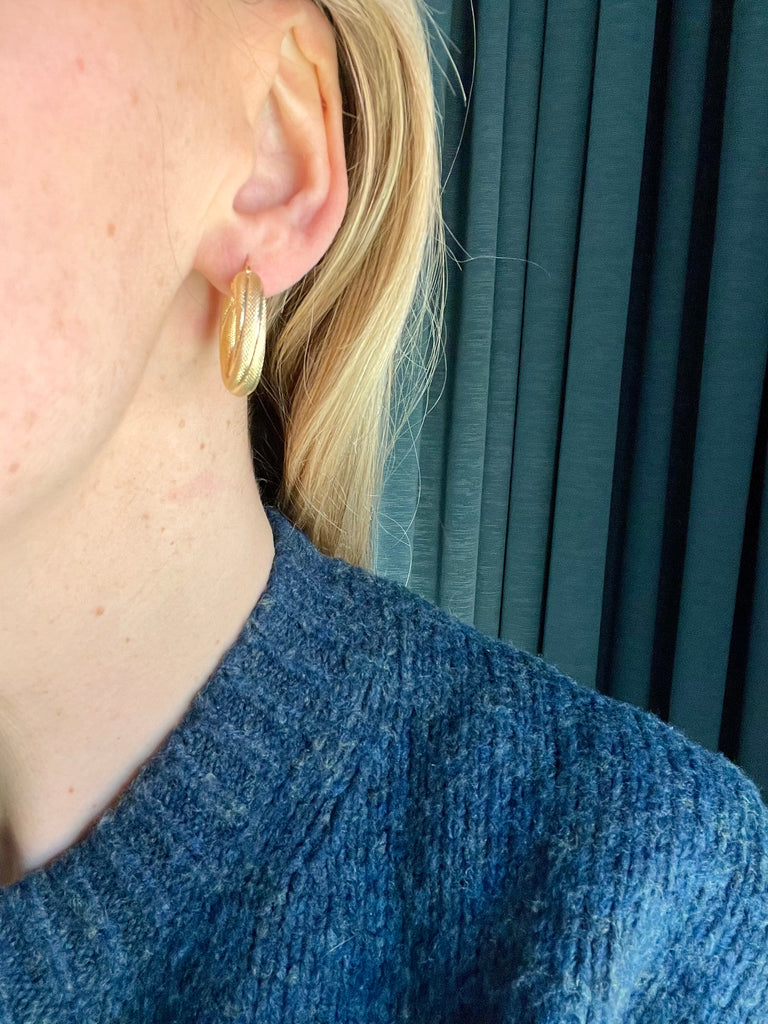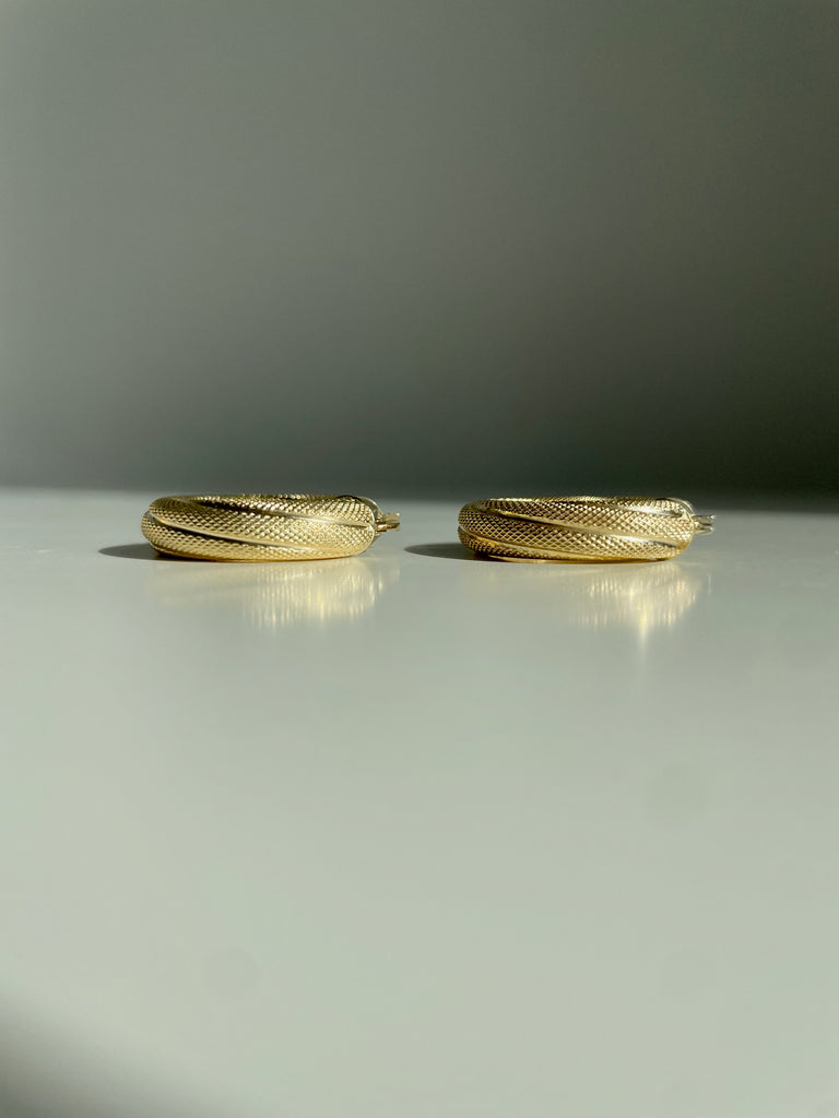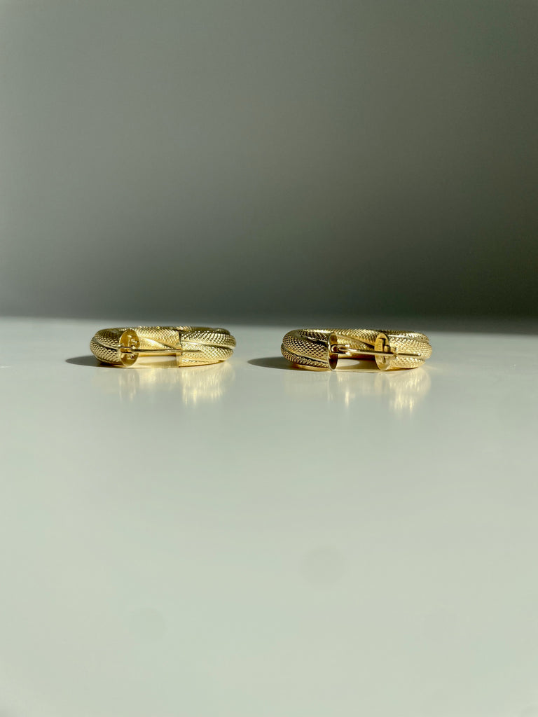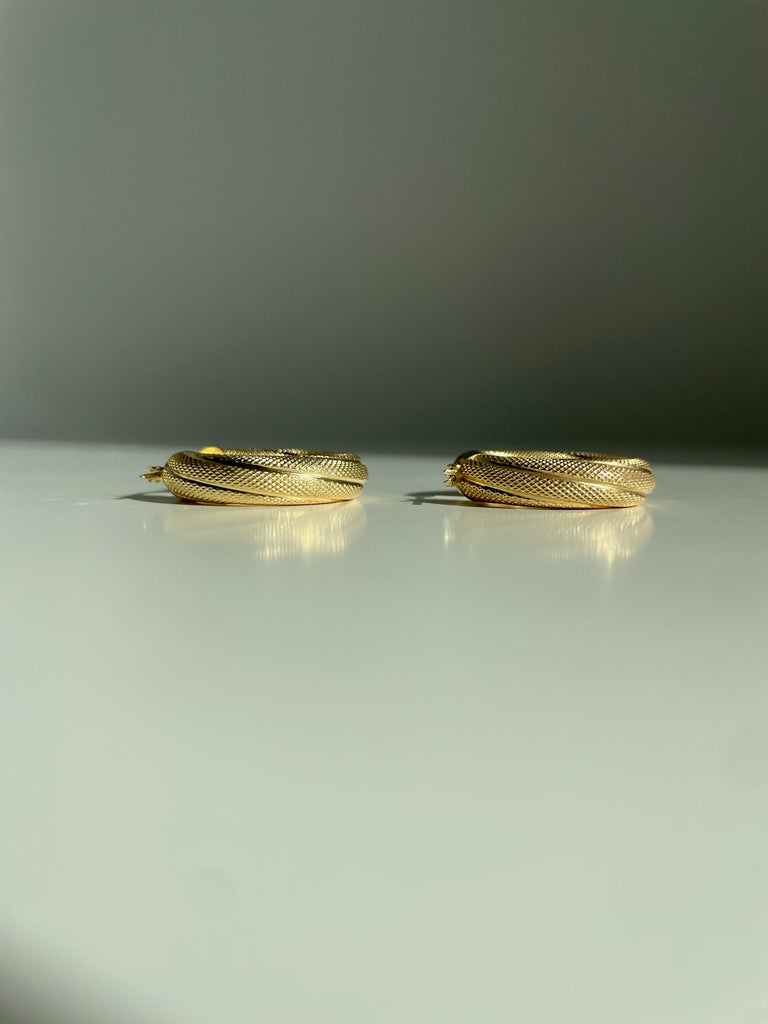 I love the textured design and twisted detail of these chubby hoops! They reflect the light beautifully and they add interest to any outfit. These are total keepers!